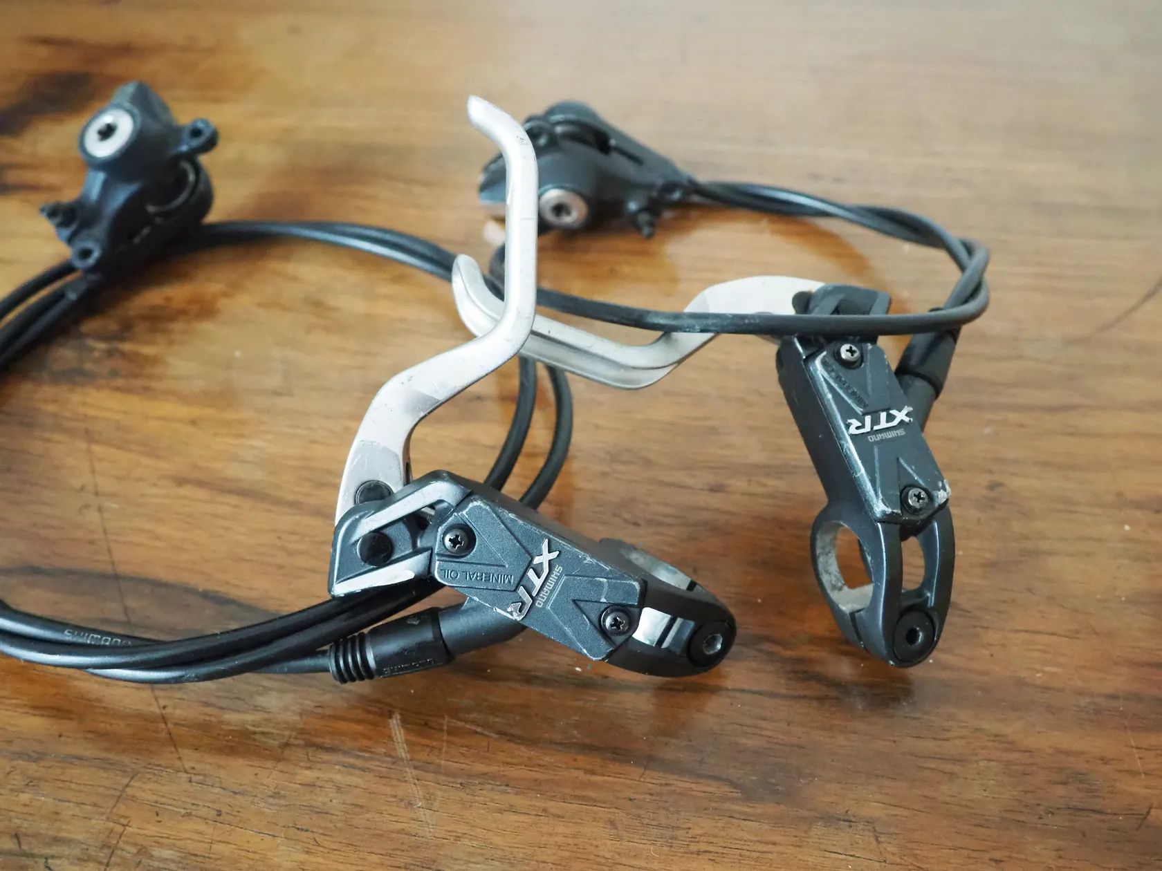 Brzdy Shimano Br-M975 XTR vč páru nových destiček. Délka hadic př. 67, zad. 140.