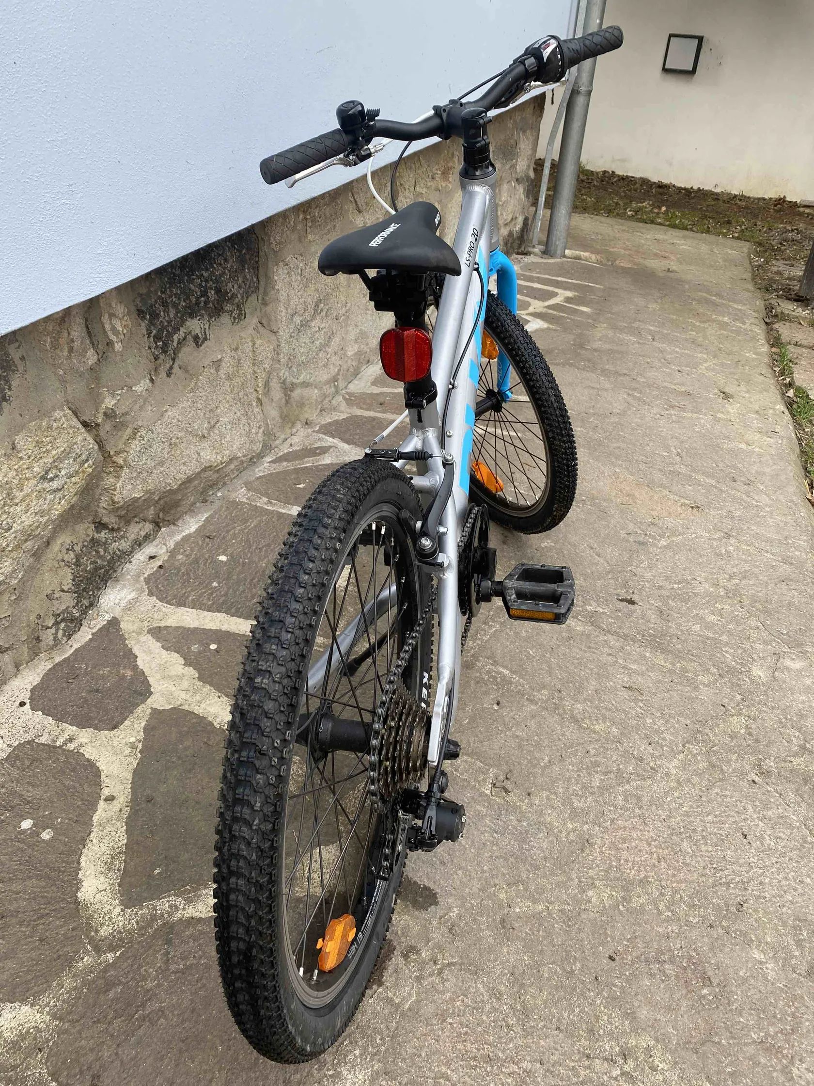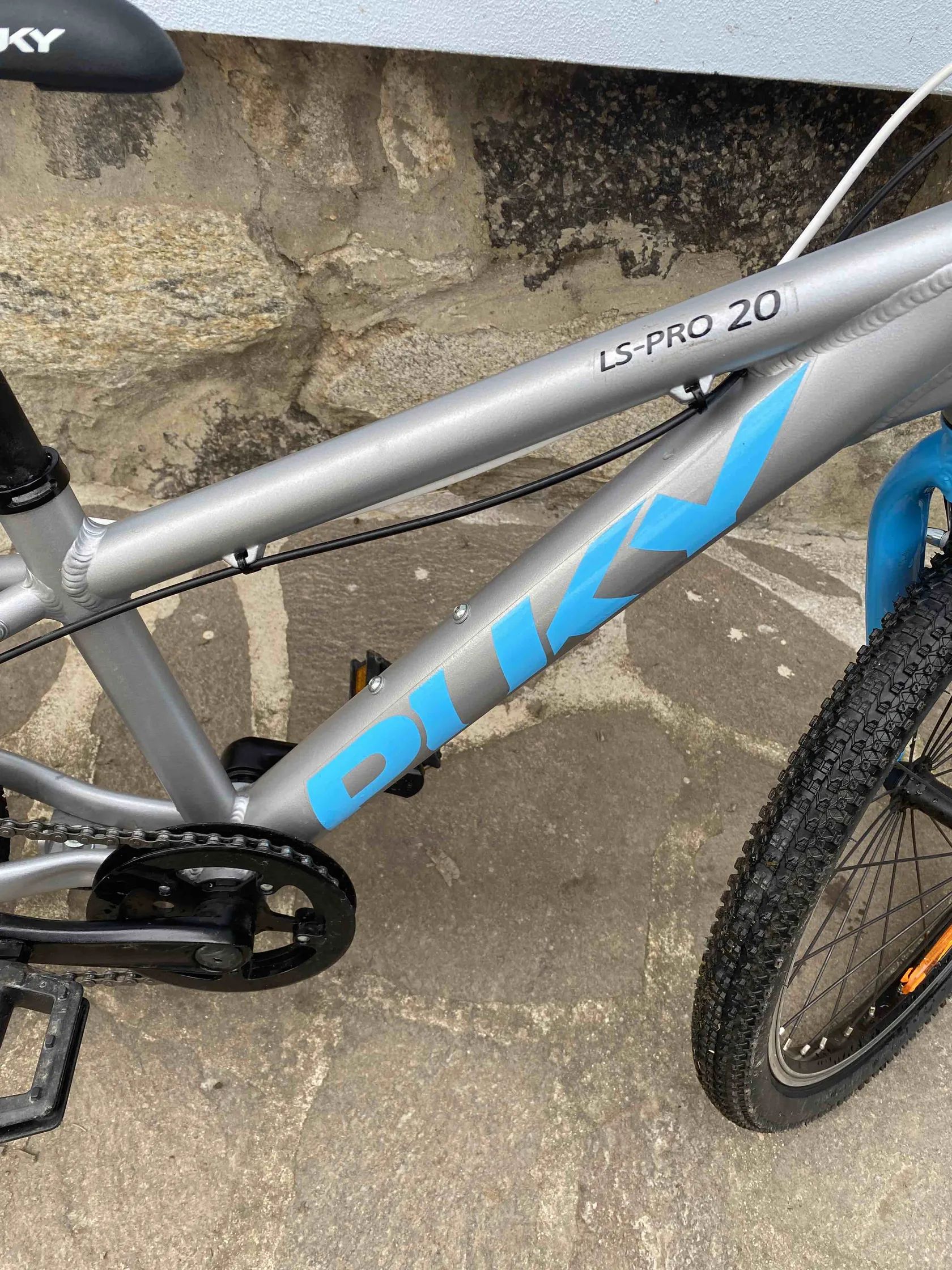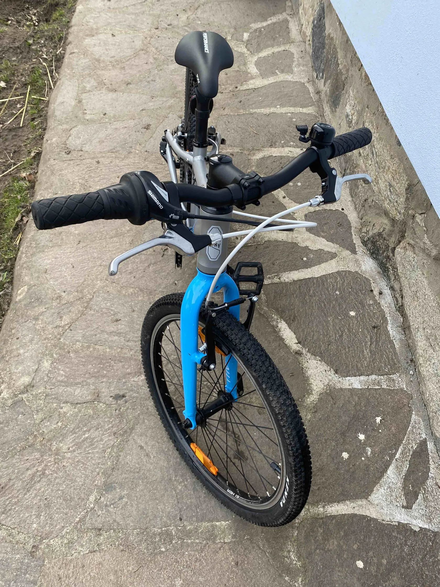 Hliníkový rám, celková hmotnost cca 8,35 kg – velmi dobré pro dětské kolo 20".