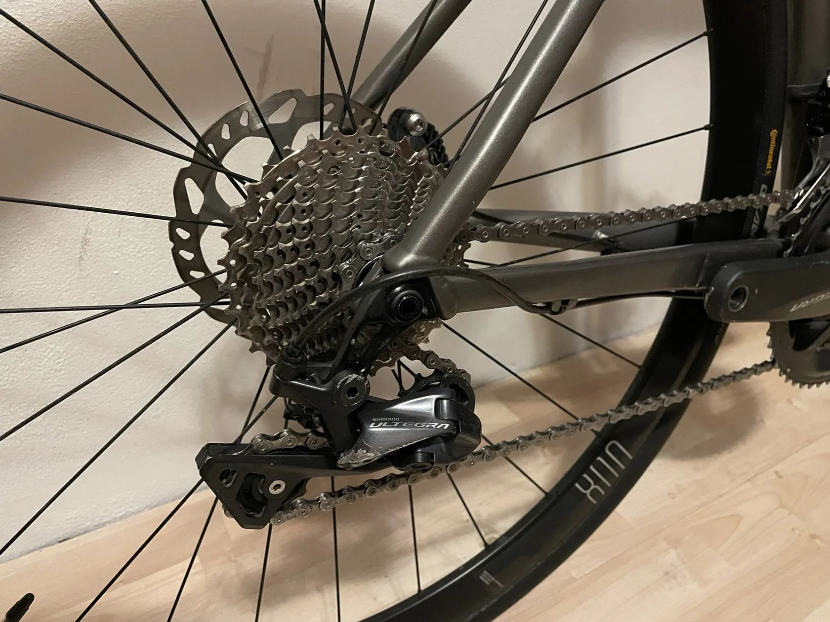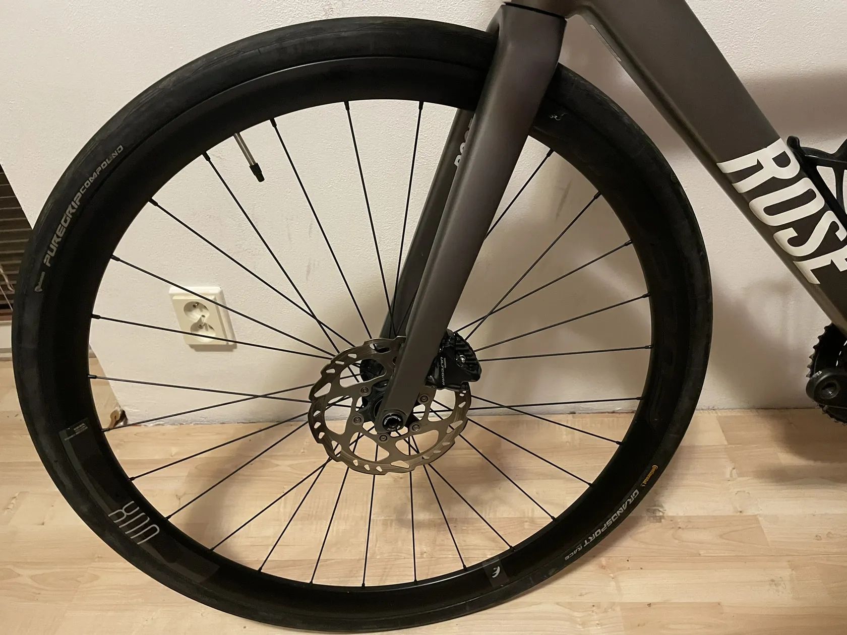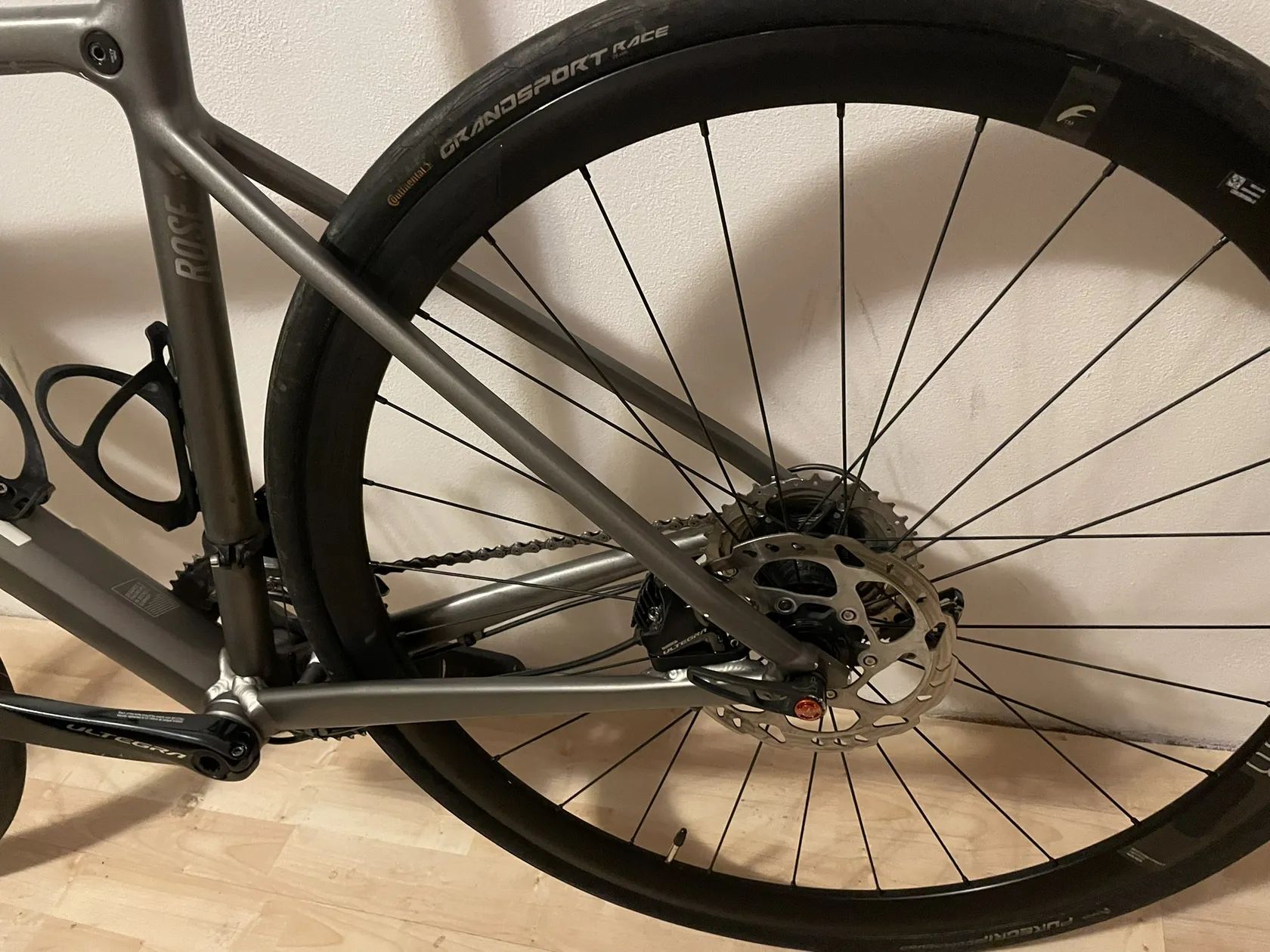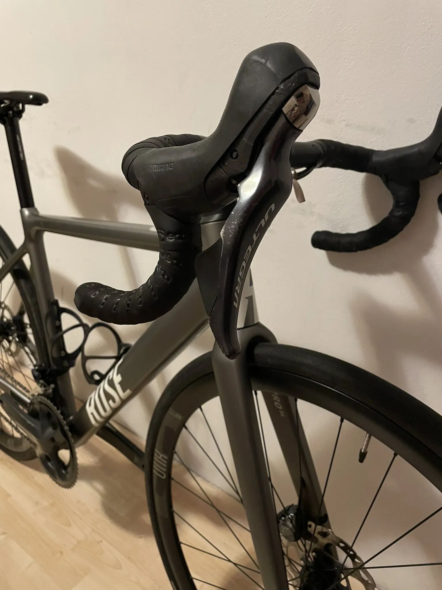 prodám kolo Rose Pro SL Ultegra, jedná se o kolo s hliníkovým rámem a hliníkovými koly s mechanickou sadou Shimano Ultegra, brzdy hydraulika, pevné osy. Rozměry rámu viz foto, délka horní rámové trubky cca 50-51 cm, výška sedlové 47 cm. Moje přítelkyně je vysoká 170 cm a na kole se jí jezdilo pohodlně. Kolo má sem tam nějaké oděrky. Na kole jsou hliníkové ráfky Fulcrum racing 800, vyšší, takže kolo s nimi vypadá lépe. V ceně jsou i originál od Rose s novými ložisky v zadním kole. O kolo bylo dobře postaráno, pravidelně čištěno, mazáno, seřizováno u mechanika.