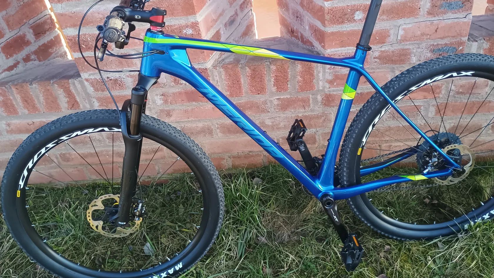 Kolo je jako nové,najeto pouze cca 100 km!!! Velikost XL na postavu cca 182-195 cm. Sedlo je vysunuté na postavu 185 cm,ale mám hodně dlouhé nohy.Ke kolu dám sportovnější sedlo...Na kolo jsem dal ergonomické gripy, které na fotkách nejsou Výbava: Rám - Merida Big Nine XT carbon. Vidlice - Rock Shox Reba 29 uzamykatelná z řídítek, Brzdy a brzd.kotouce- Shimano XT, Přehazovačka a řazení - Shimano XT 2x11, Kliky -Shimano XT -34,24 zubů, Přesmykač -Shimano XT, Kola- Boost Mavic Crosmax 29, Carbonova sedlovka, Řidítka a představec - Crankbrothers Cobalt 3, Kazeta -Shimano SLX, Řetěz -Shimano XT, Pláště Maxxis. Kolo celkově váží jen 11 kg.