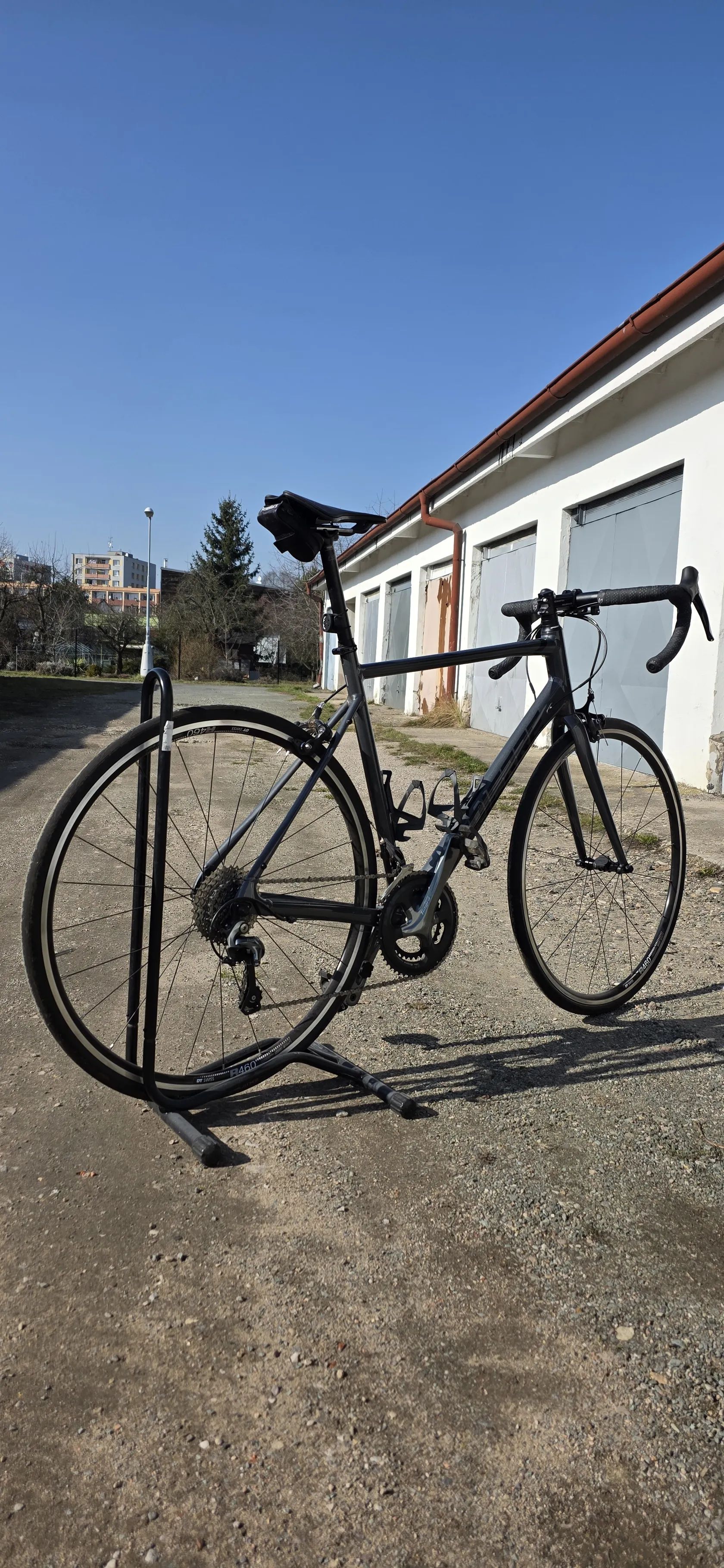 Zvládne i horší povrch (rozbitější silnice, drobné nerovnosti) díky endurance geometrii, ale stále jde o čistou silničku.