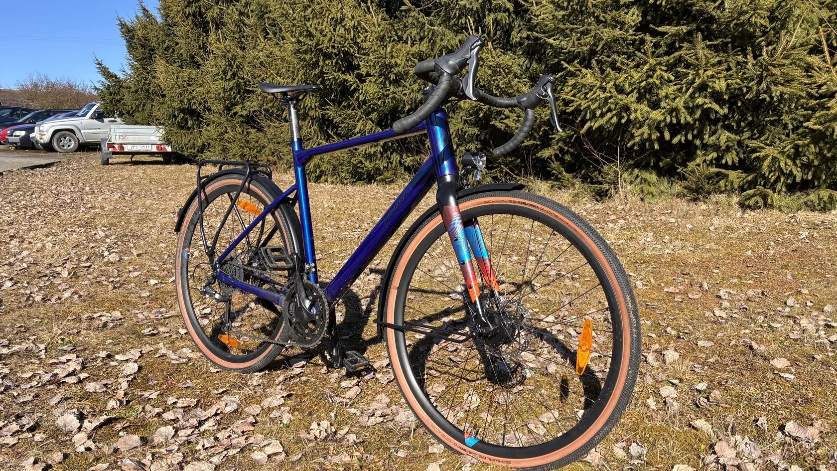 Bergamont Grandurance RD3. Alu rám, alu vidlice. Osazení Shimano Claris. Brzdy Tektro. V předním náboji dynamo 3W. Skoro nové. Sedlo je na fotkách nastavené na výšku postavy 173 cm.