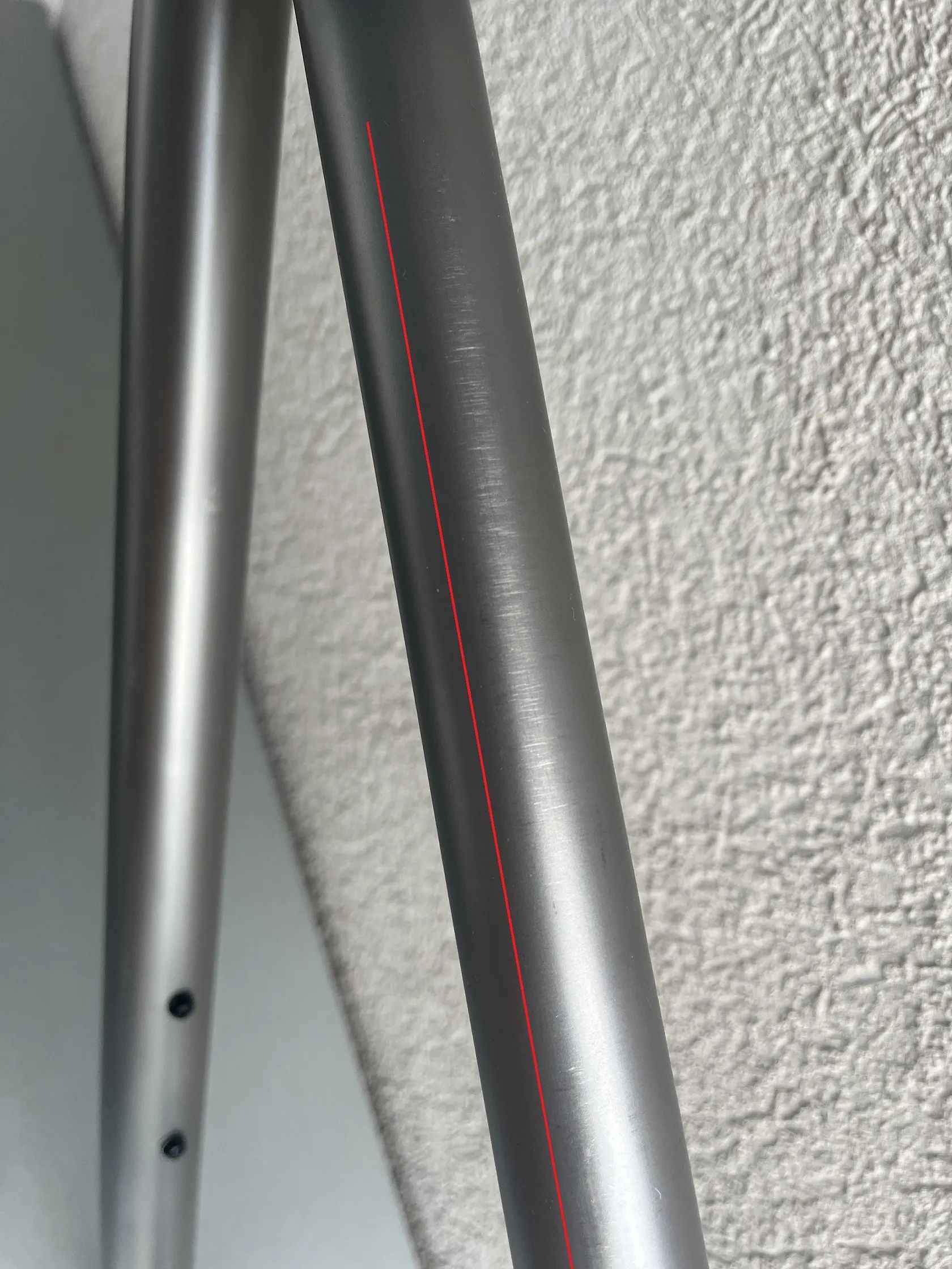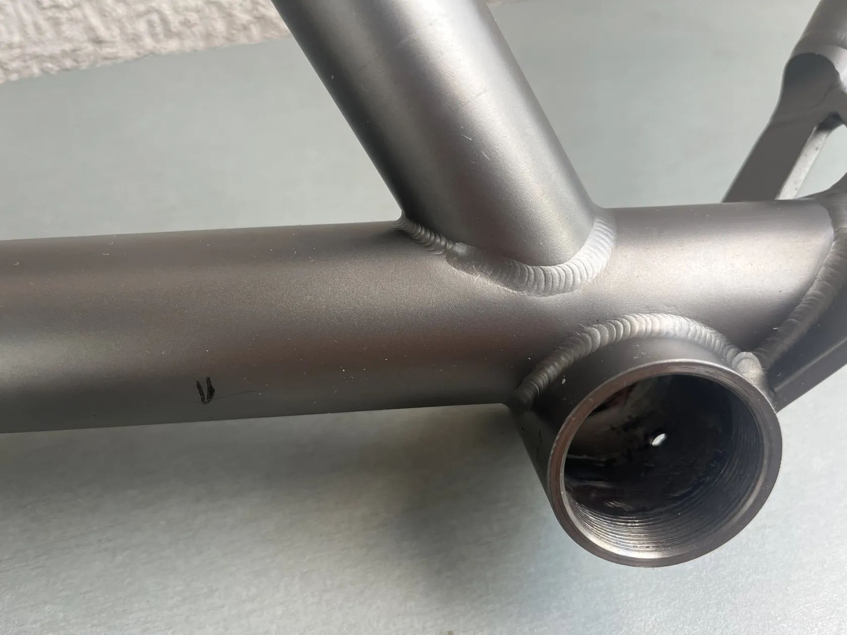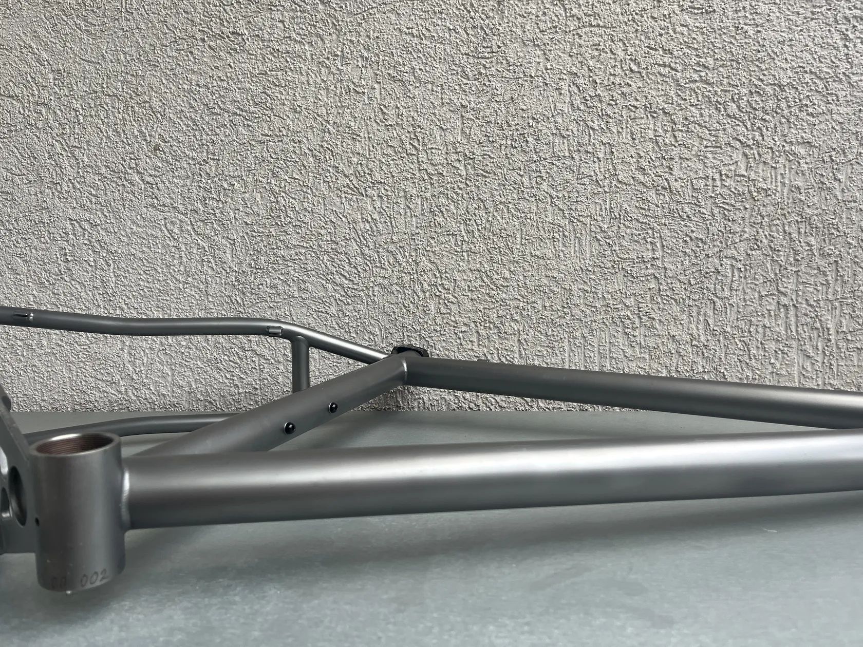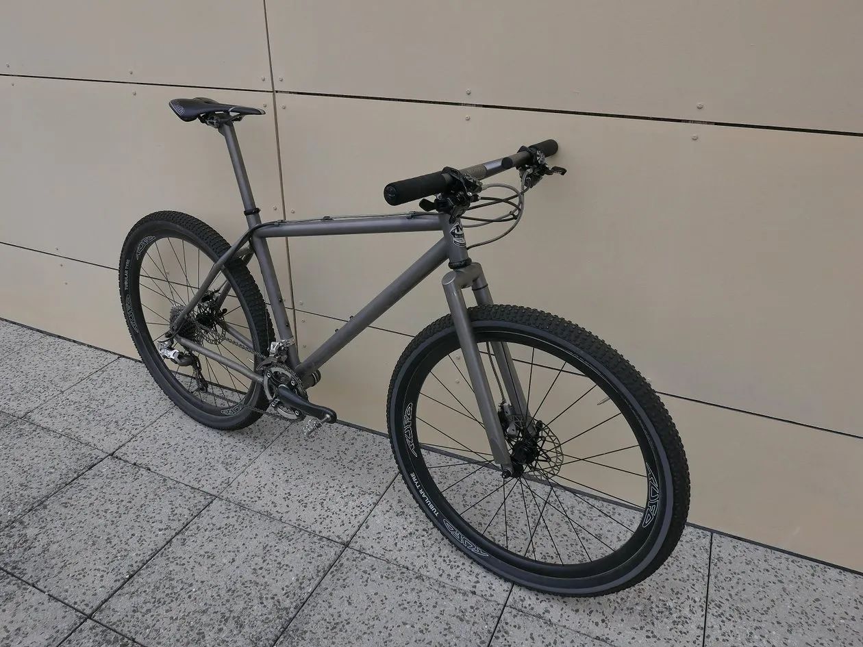 Stav rámu - není to leštěnka, pořídil jsem s již obroušeným stavem surového titanu především pod lanky a bovdeny. Vyznačeno na fotkách. (boky hlavy, horní rámovka) Bovdeny to zase částečně schovaj. Rám dostal v držení předchozího majitele v levé spodní části u středu dělo asi od kamene někdy v minulosti. Také vyznačeno na fotce. Pro inspiraci co z toho můžete poskládat přikládám i fotky celého kola jak jsem si to svého času jezdil