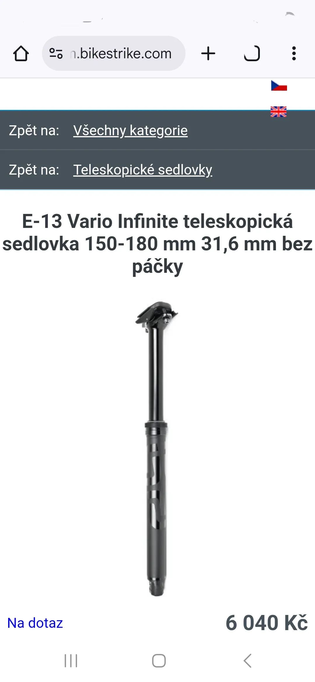 Ponúkam na predaj hore uvedenú čisto novú teleskopickú sedlovku s vnútorným vedením značky E*Thirteen Vario Infinite. Jedná sa o teleskopickú sedlovku s nastaviteľným zdvihom v rozsahu až 30mm - 150mm až 180mm. Stav čisto nové nepoužité demontované z nového bicykla. Sedlovka má vnútorné vedenie a je možné ovládať páčkou všetkých výrobcov ktoré používajú na ovládanie sedlovky lanko. Priemer sedlovky do rámu 31,6mm. Zdvih sedlovky 150mm až 180mm. Vnútorné vedenie. Uzamknutie v ľubovoľnej polohe. CNC opracované čierny elox s logom výrobcu. Stealth Black Design. Vhodné pre použitie všetkých MTB aj E-MTB disciplín ako All-mountain Trail Enduro Freeride.