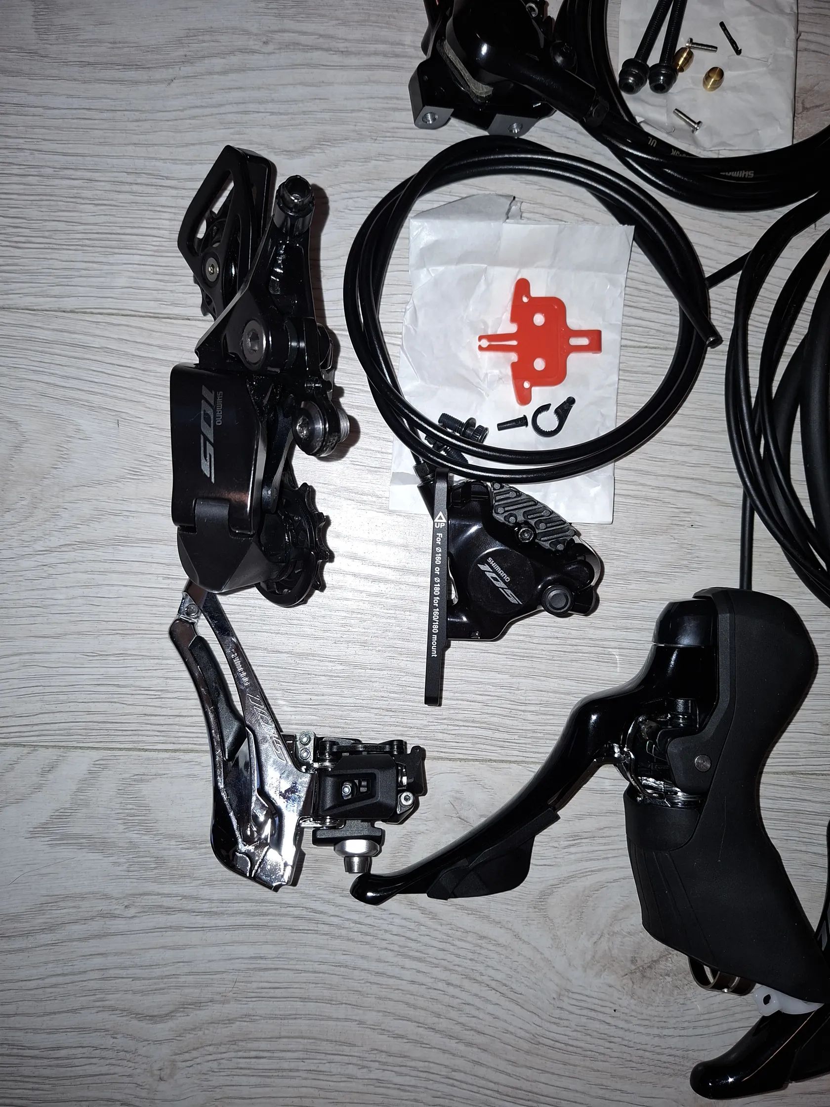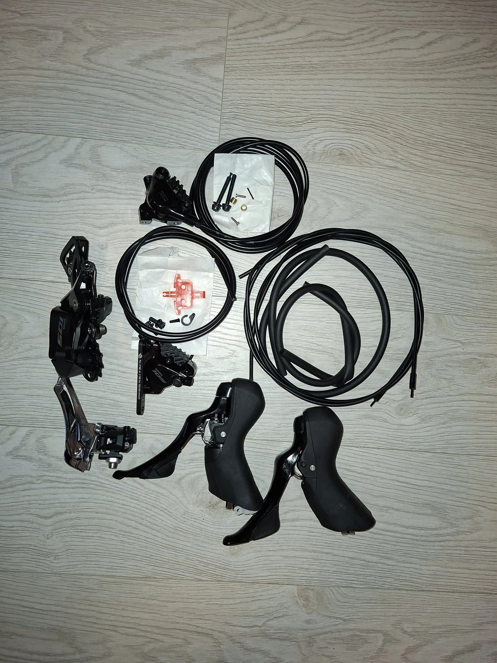 Prodám novou nejetou sadu Shimano 105 7100 2x12, sundano noveho kola Trek. Obsahuje řadící paky, třmeny s deskami, hadice, přehazovačka, smyk. Cena za komplet 6000 Kč.
