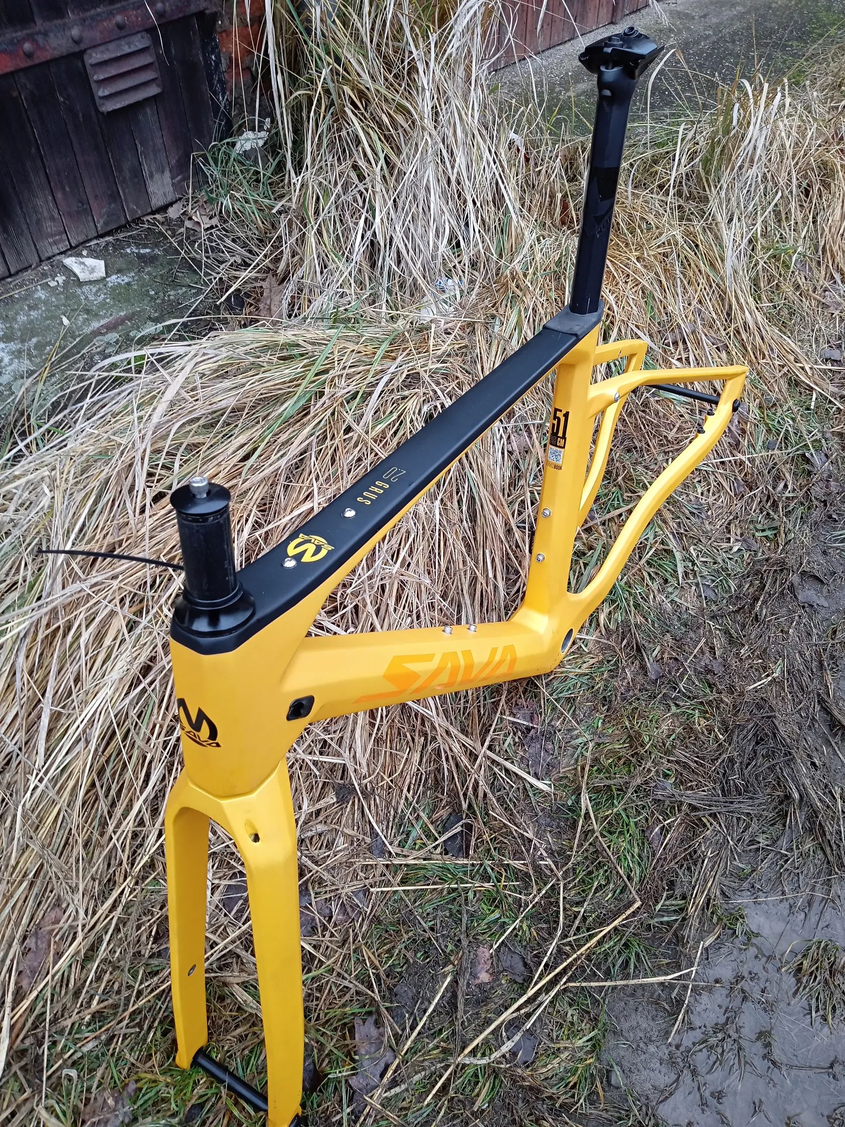 Prodám málo jetou rámovou gravel sadu Sava Grus ve velikosti "M". Na zadní stavbě je malá oděrka od řetězu. Jinak vše OK. Rám je včetně přední a zadní osy, hlavového složení, sedlovky, šroubů na zadní brzdu, kotoučů 140 mm a gravel plášťů CST šíře 40 mm.
