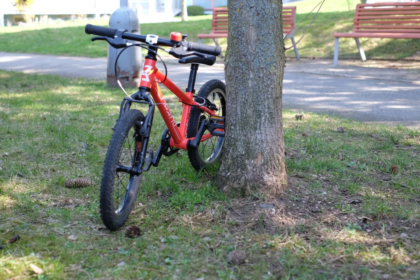 V‑brzdy s páčkami pro malé ruce – dítě snadno dosáhne a stiskne