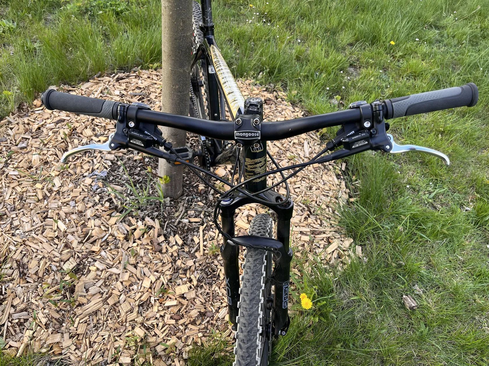Prodám horské kolo Mongoose s koly 26". Stav: dobrý, plně funkční, běžné oděrky z používání. Rám: hliníkový. Výbava: odpružená vidlice SR Suntour, kotoučové brzdy, přehazovačka SRAM X5, vícerychlostní převody. Pláště CST Crusader. Vhodné na běžné ježdění i lehčí terén. Velikost rámu L. Osobní předání.