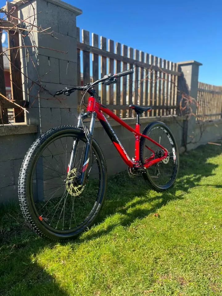 Prodám Rock Mashine Blizz v celkem dobrém stavu za 13000 kč. Závady pouze povrchové a mírně vrže občas zadní brzda. Komponenty jsou na kole základní, vzduchová vidlice RST Aerial (zdvih 120mm), hydraulické brzky a přehazovačka Shimano Altus (přední 2 převodníky, zadní 9), duše a pláště WTB . Kolo bylo koupeno v létě a je na něm odjetý jeden závod (Chainless Monínec). Hmotnost kola je 14,20 kg. Oba náboje kol jsou rychloupínáky. Kolo je dobré i na normální jízdu i na jízdu v terénu či bikeparku pro začínající a mírně pokročilé jelikož je to velmi hráve kolo dobré na ovládání a dá se na něm hodně naučit. Kolo prodávám z důvodu koupě nového celoodpruženého. Pokud by byl zájem pište na email nebo na telefoní číslo nebe přes víkend popřípadě zavolejte.