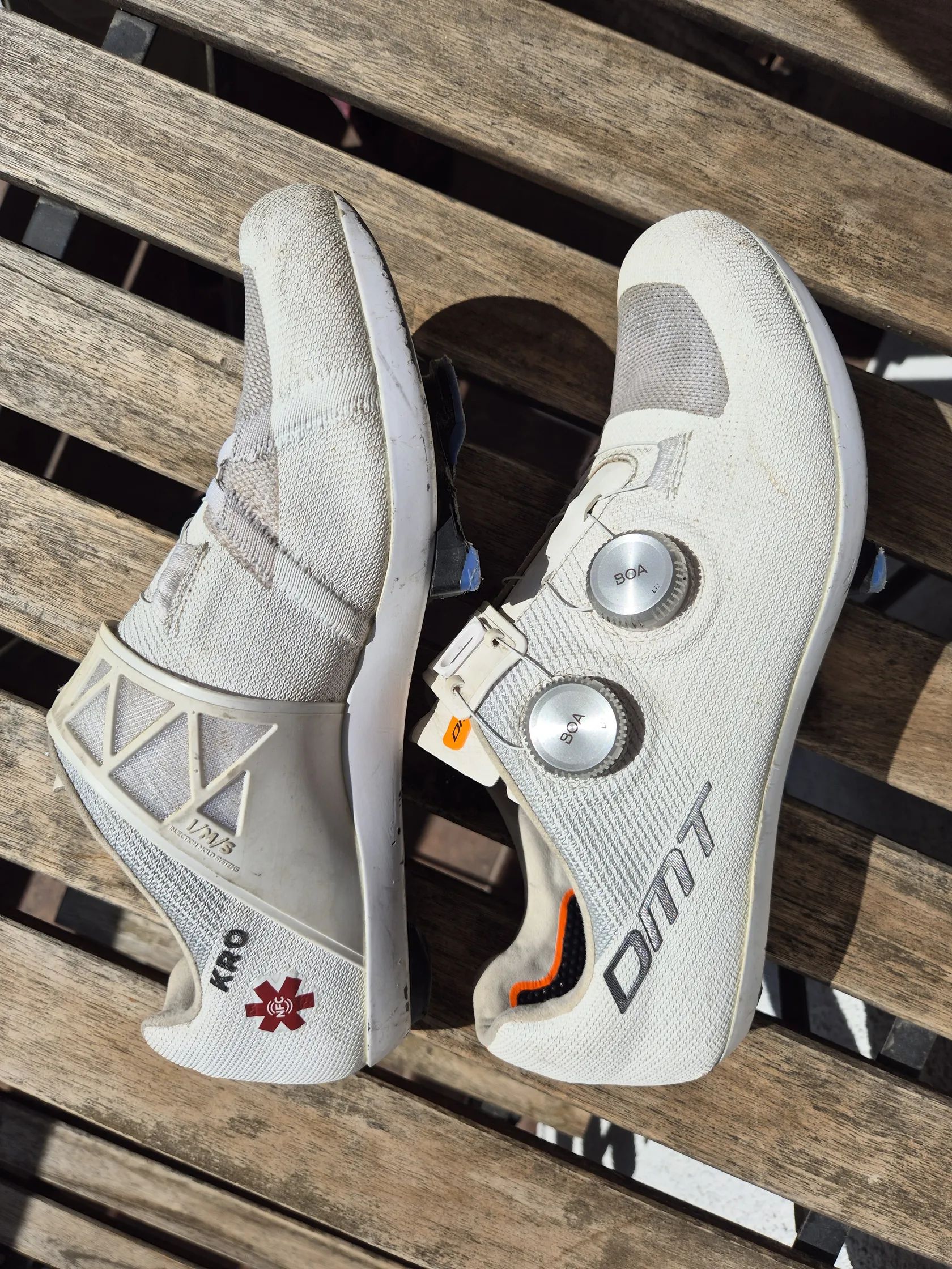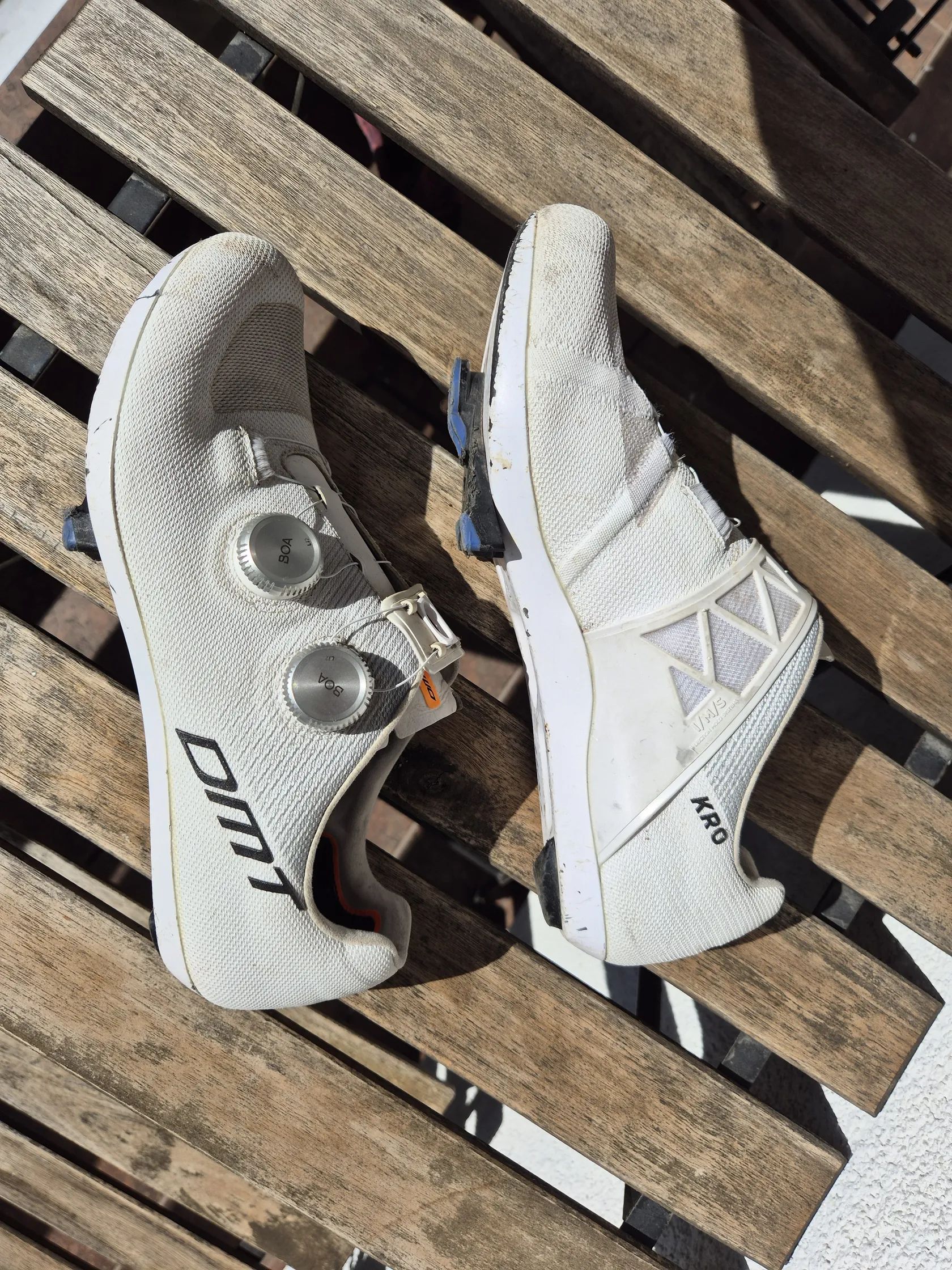 Prodám sezónu ježděné tretry DMT KR0 Evo, velikost 43. Top model od DMT. Jsou mi trochu těsné, doufal jsem že povolí, ale drží tvar jak nové. 100% stav, pouze ta bíle nalakovaná podrážka je samozřejmě trochu ochozená. Původní cena 10tisic.