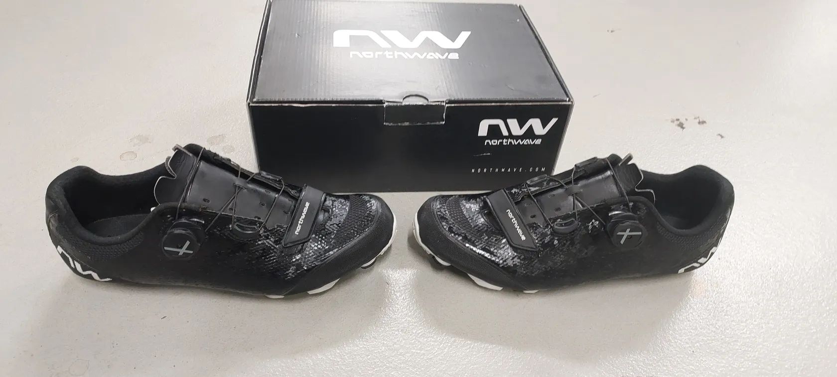 Prodám málo jeté MTB a gravel tretry Northwave RAZER 2, bohužel mi nesedly, horní a vnitřní část treter je jako nová, na podrážce pouze povrchové škrábance viz foto.