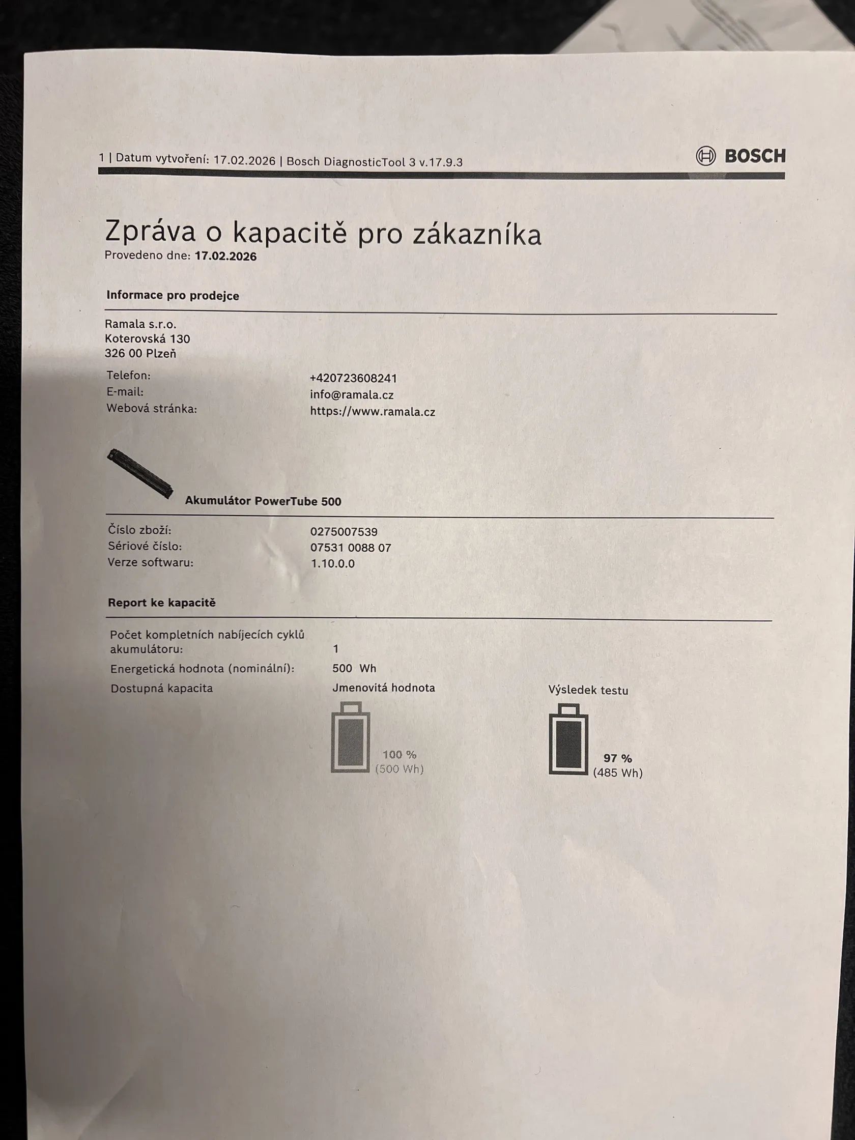 baterie Bosch Powertube 500Wh 100%kapacity