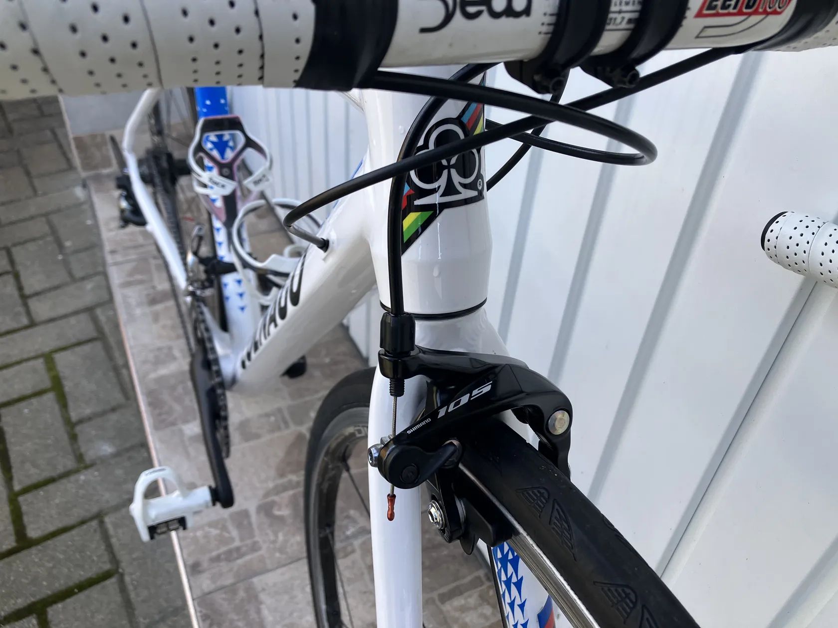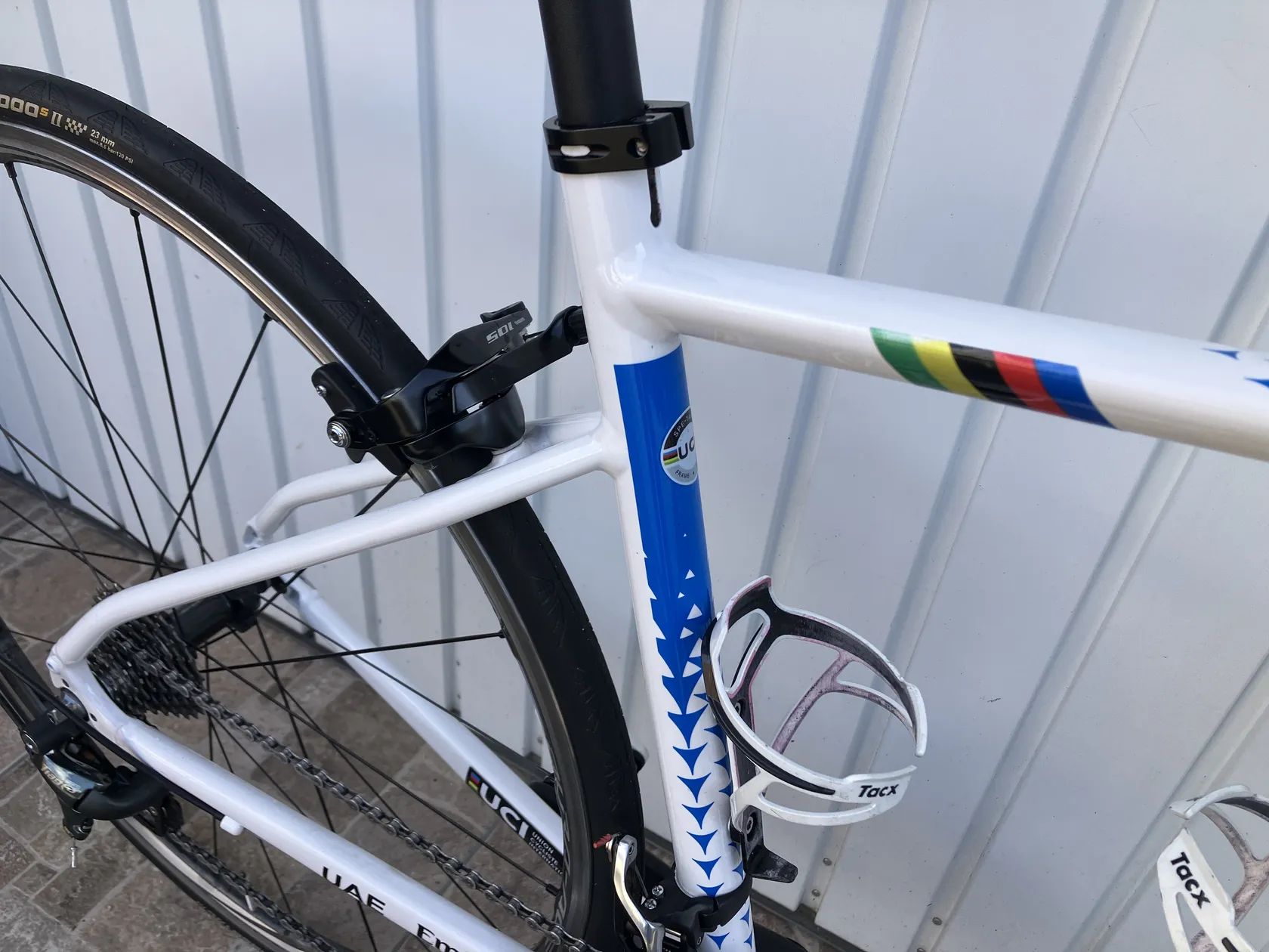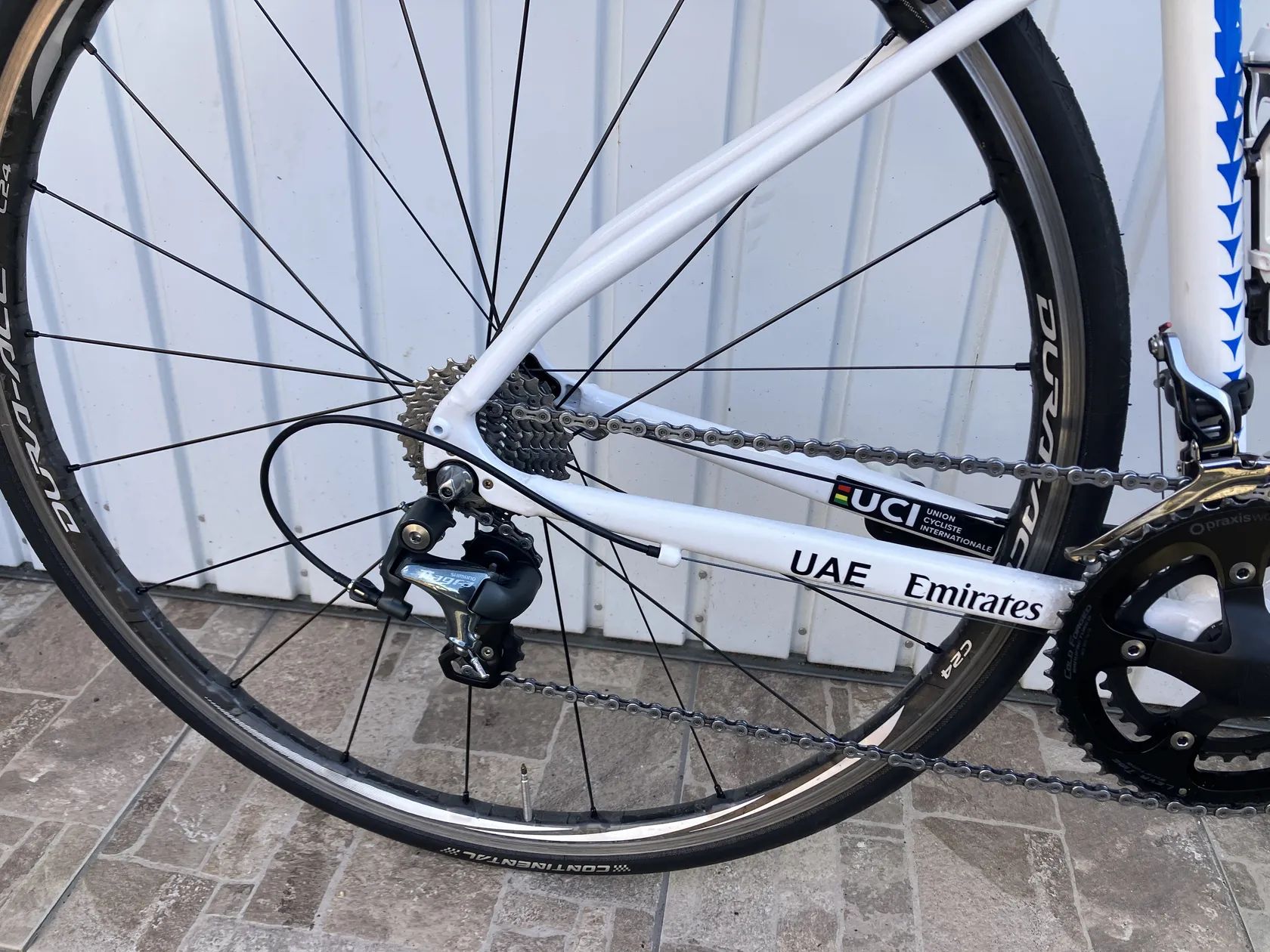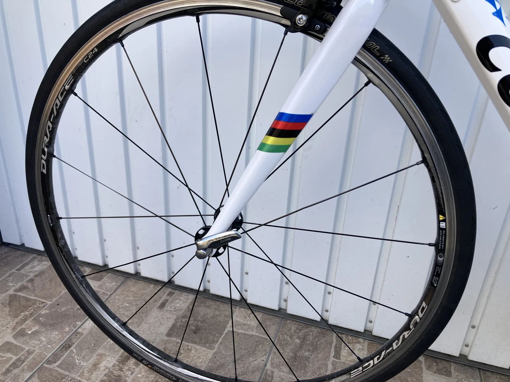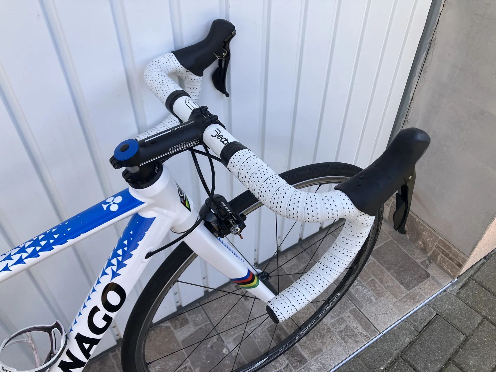 Prodám toto kolo.Velmi zdařilá replika laku momentálně nejlepšího cyklisty na světě.Velikost rámu 48 tedy pro postavu od 145 do 170cm.Moderní lehký hliníkový rám s vnitřním vedením.Řazení Shimano 2x10.Brzdy Shimano.Zapletená hliníkovo karbonová kola Shimano Dura Ace c 24.Pneu Continetal GP 4000.Řidítka Deda,představec,Force.Součástí kola jsou silniční pedály Look nebo Shimano.Pošta není problém ale pouze platba předem na ůčet+ navíc poštovné 400kč.Více info na tel.