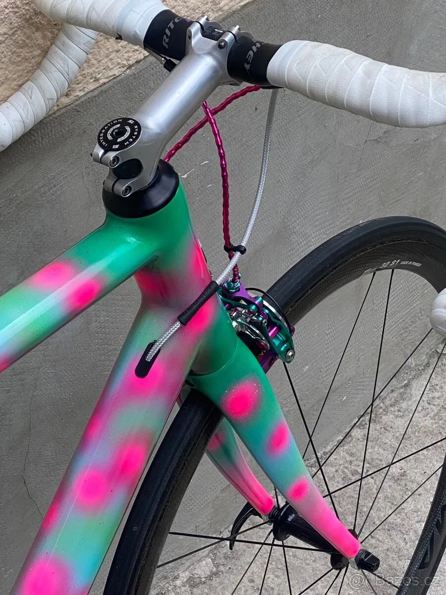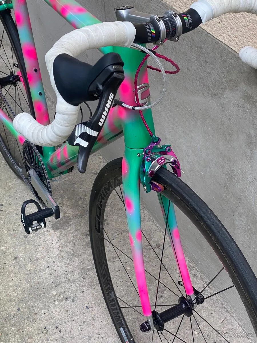 - Karbonový rám s duralovou zadní stavbou. Oversize hlavová trubka. Výborná tuhost. Rám je adaptován na 1x mechanické sady, má vnitřní vedení lanek - Karbonová Kola Corima (galusky tufo) - Originální karbonová vidlice - Epesní karbonová sedlovka s-tec essence, ultralehká objímka sedlovky - Unikátní, dnes již nesehnatelný, představec SOUL Kozak 115mm (0dg) - brzdy EE (nejlepší brzdy na trhu) - Kliky 166mm 48T převodník, střed Praxis Works 30mm - Kazeta 10-46 - páky Sram Force 1x- Sedlo Prologo NDR 143 - Řidítka Ritchey WCS - lehčí verze (10mm rise, 40 c-c, backsweep) - Tune karbonový košík na bidonNový řetěz KMC, čertvě navoskovaný s PTFE.