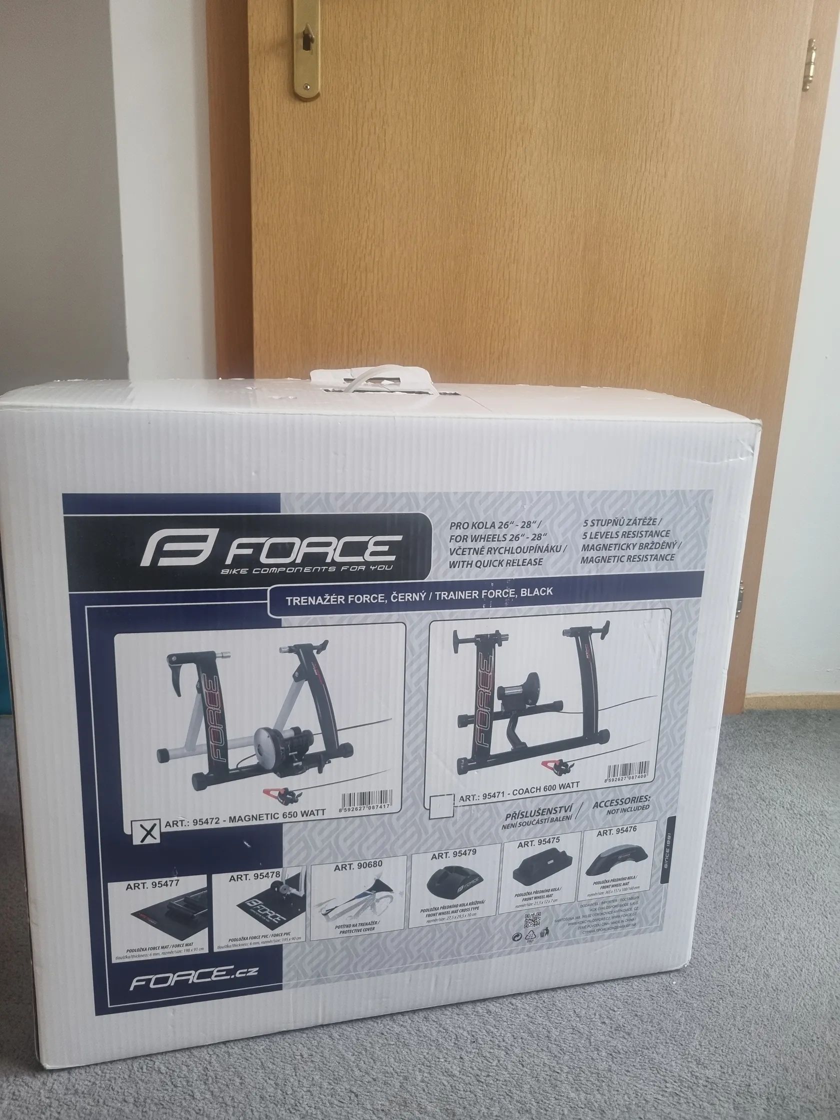 Prodám trenažér značky FORCE, vhodný pro kola 26" až 28". Trenažér je magneticky brzděný a nabízí 5 stupňů zátěže. Součástí je také rychloupínák.