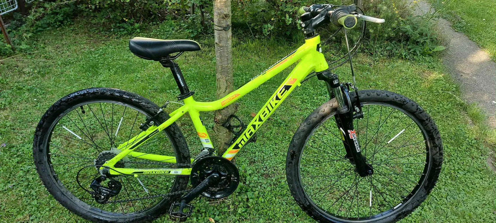 Prodám horské kolo MAXBIKE MTB 26" v neonově žluté barvě s oranžovými a černými doplňky. Kolo má velikost kol 26 palců, je vhodné pro děti nebo menší dospělé. Je vybavené pružinovou vidlicí SR SUNTOUR, která zajistí pohodlnou jízdu v terénu, a přehazovačkou s více rychlostmi pro snadné zvládání kopců. Kvalitní brzdy s pákami zaručují bezpečné zastavení. Sedlo značky ZOOM je pohodlné i na delší jízdy. Kolo je ve perfektním stavu, s minimálními známkami použití, ideální na výlety i sportovní jízdu. Cena je k jednání. Kolo je připravené na sezónu, neváhejte mě kontaktovat pro více informací nebo osobní prohlídku.