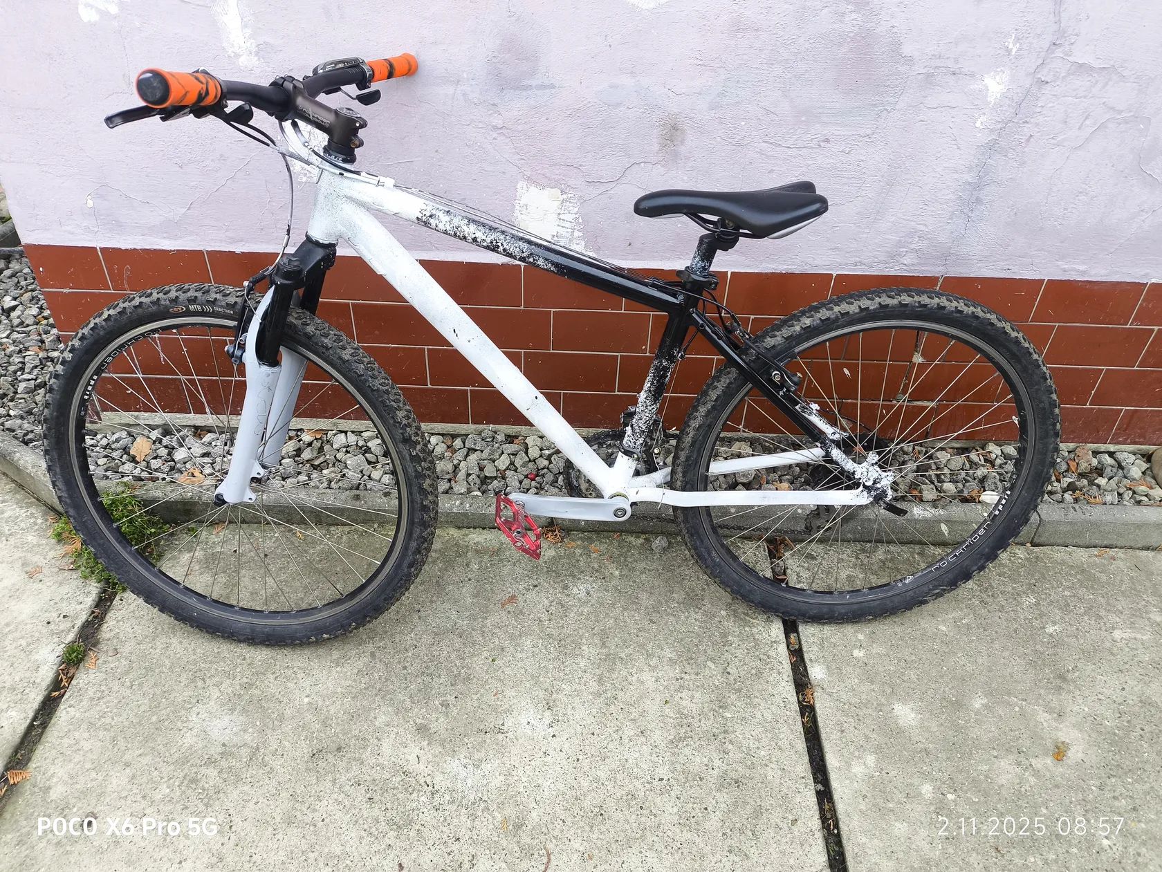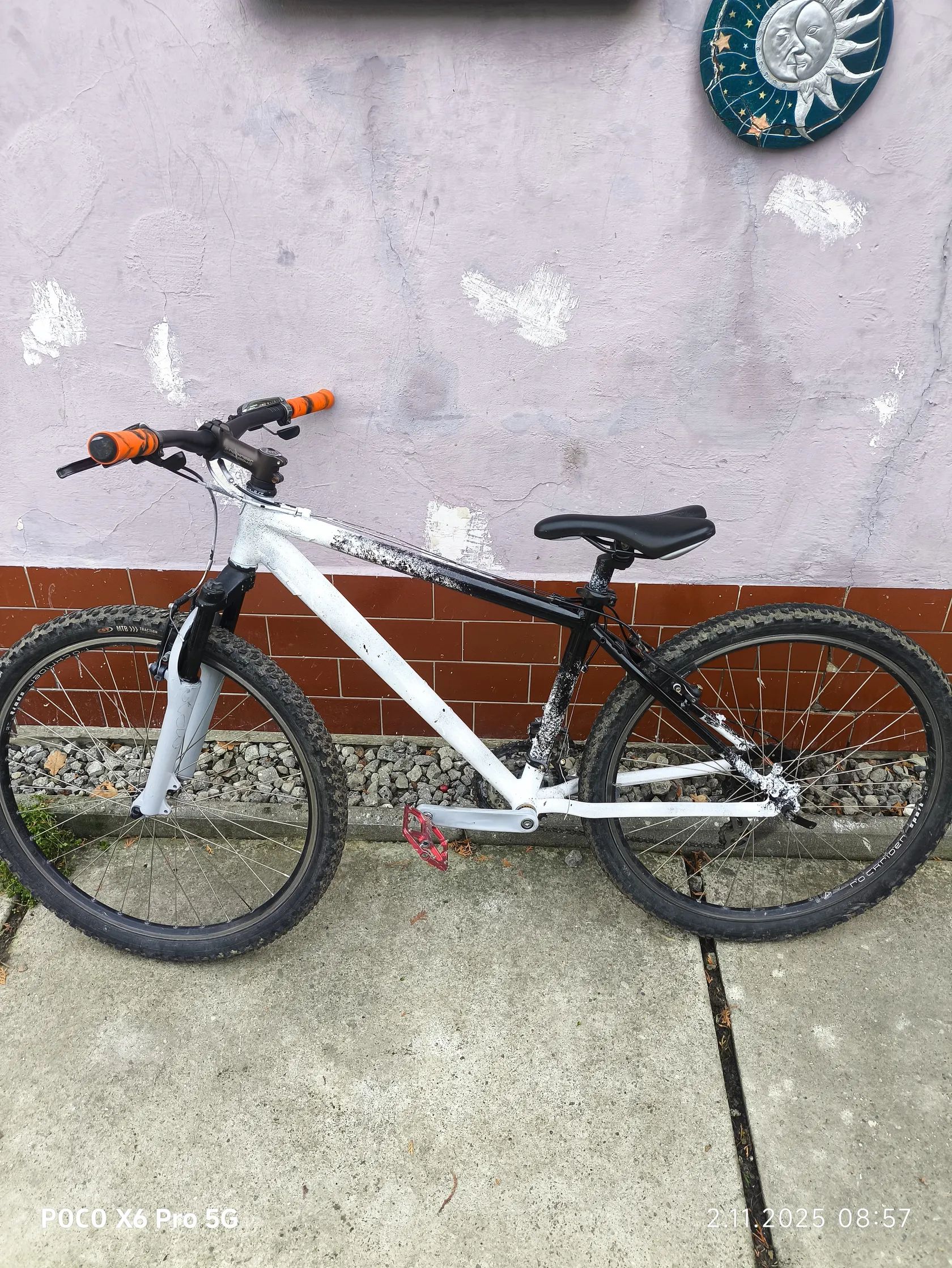 Prodám horský bicykl Rockrider s velikostí kol 27". Kolo je ručně sprejované v originální černo-bílé barvě – má jedinečný vzhled, který nikdo jiný nemá. Je plně funkční, brzdy i přehazovačka fungují bez problémů. Vhodné na jízdu po městě, cyklostezkách i v lehčím terénu.
