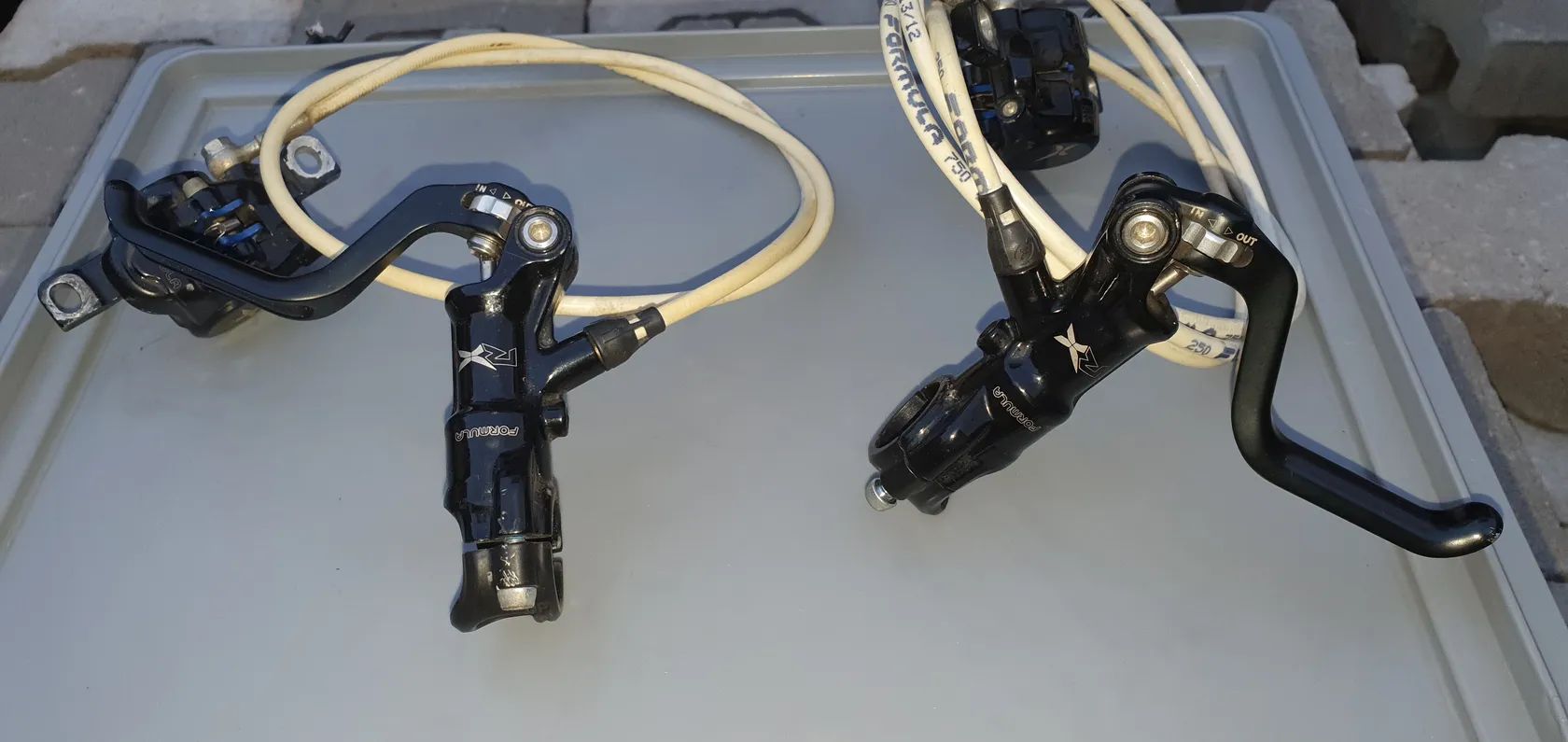 Kompletní brzdy Formula RX vč. nových destiček. Páky mají nastavení délky chodu. Vše funkční a bez poškození.