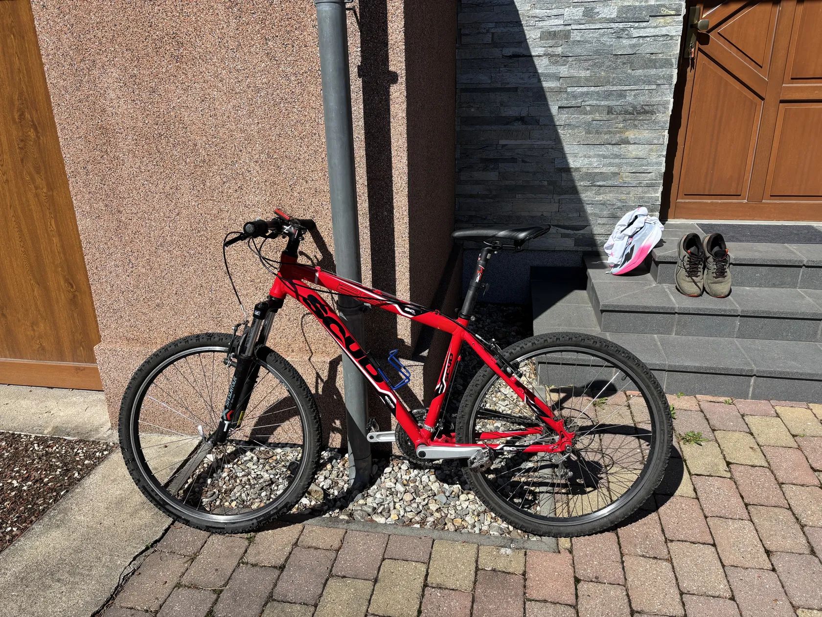Prodám zachovalé a plně funkční horské kolo postavené na kvalitním hliníkovém rámu SCUD (Alu 6061). Kolo je osazeno spolehlivými komponenty Shimano a je ideální pro rekreační ježdění, cyklostezky nebo lehčí terén. Kolo bylo pravidelně udržované, vše funguje hladce. Velkým bonusem je špičkové sportovní sedlo a odolné české ráfky. Drobné opotřebení na rámu z běžného používání viz. foto. Technické parametry: • Rám: Hliníkový Scud MTB Technology (velikost kol 26") • Odpružená vidlice: SR Suntour XCT (nastavitelná tuhost) • Přehazovačka: Shimano Acera (8/9 rychlostí) • Přesmykač: Shimano Tourney • Kliky: Shimano • Brzdy: Klasické V-brzdy (vysoká účinnost, snadný servis) • Ráfky: Kvalitní dvoustěnné Remerx Dragon (česká výroba) • Pláště: CST MTB All Purpose (pěkný vzorek) • Sedlo: Sportovní značkové sedlo fi'zi:k (velmi pohodlné a lehké) Doplňky v ceně: • tachometr • Držák na láhev • Kovové pedály s protiskluzovou úpravou Kolo je připravené na sezónu – stačí nasednout a jet. Lokalita: Olomouc Při rychlém jednání možná sleva.