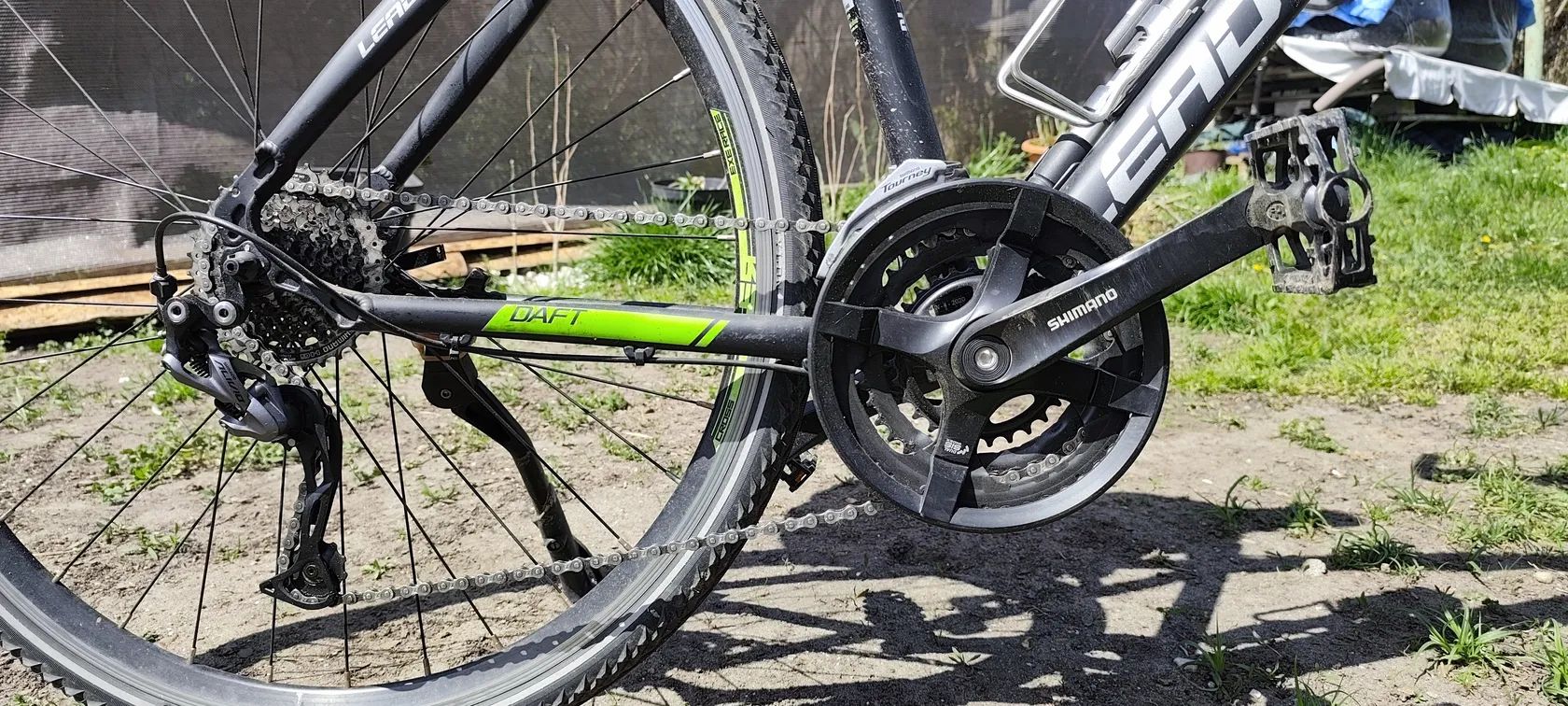 Komfortnější posed pánského krosového/trekingového kola, vhodný pro delší čas v sedle