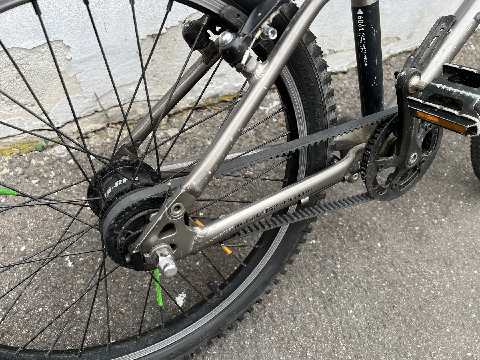 Díky hliníkovému rámu a řemenu vhodné pro rodiče, kteří preferují lehké a méně údržbové dětské kolo
