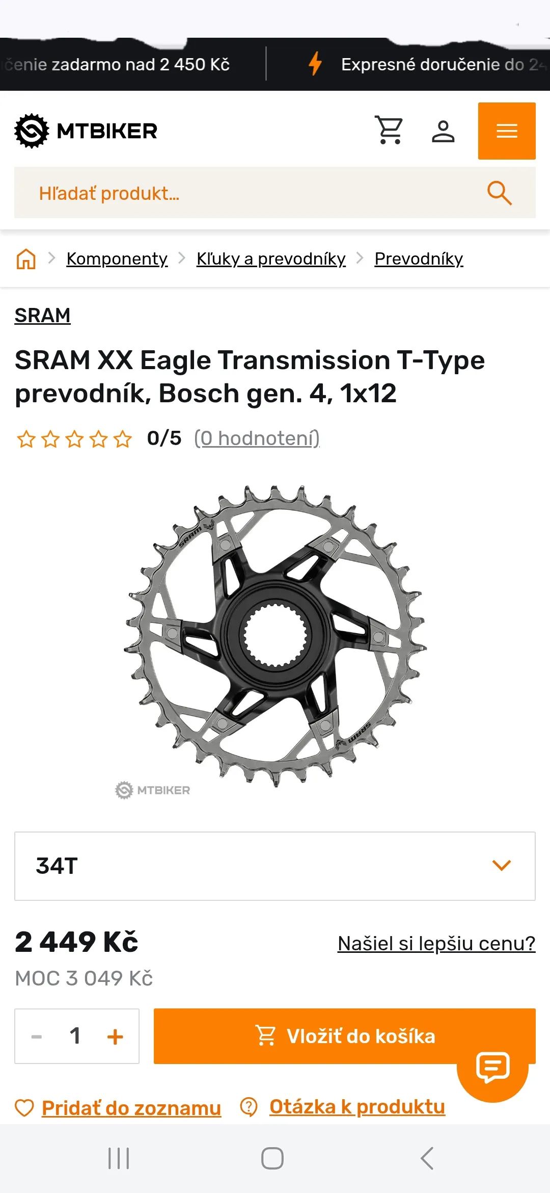 Ponúkam na predaj hore uvedený nový prevodník značky Sram XX Eagle Transmission T-Type. Najvyššia séria a novinka Sram XX. 34z. Vhodné pre elektrobicykle s motorom Bosch Gen4 a Gen5. Stav čisto nové nepoužité originál balenie viď foto v inzeráte. Celo CNC frézované čierny matný elox. Uchytenie prevodníka Bosch Direct Mount. Pôvodná cena dvojnásobná viď foto screenshotu.