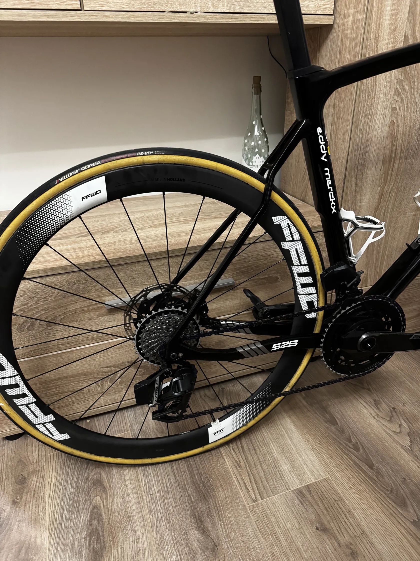 Prodám kolo Eddy Merckx 525 na sadě Sram AXS E1 Force 2x12 s wattmetrem Velikost M, odpovídá zhruba jako 58 u specialized (179-187) Výška sedla od středu jde nastavit od 72 cm do 86 cm kola FFWD ryot 44 na nábojích DT swiss 240, kombo řídítka Deda 130x400.