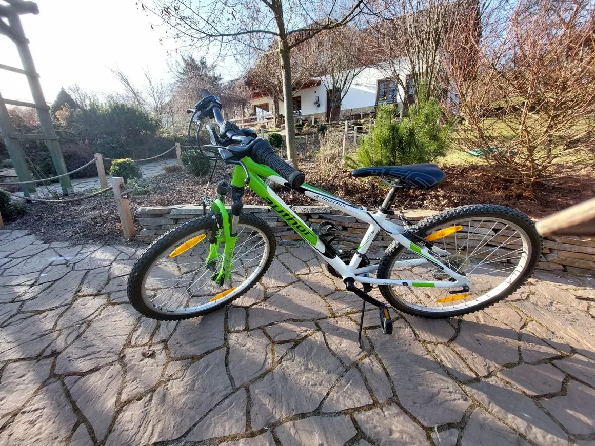 Prodám kolo Author A-Matrix,Velikost rámu 13´´, průměr plášťů 24´´, pro dítě 125-140cm, Přesmykač shimano TZ30, měnič shimano TY21, brzdy Tektro 855AL. odpružená přední vidlice Počet rychlostí 18. Pouze osobní odběr.