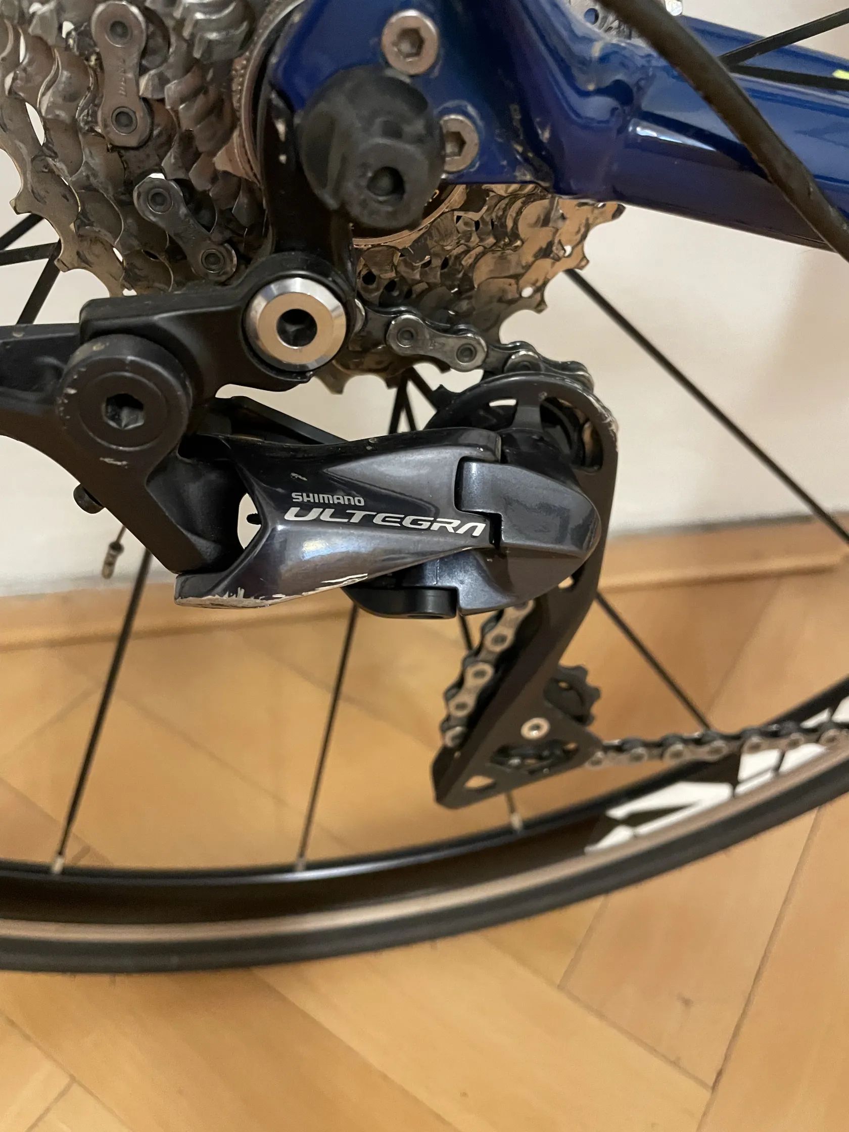 Specifikace: velikost: S/M, nyní nastaveno na 170 cm rám: hliník, karbonová vidlice sada: Shimano Ultegra groupset 2×11 kola: Mavic Cosmic brzdy: ráfkové pláště: 700x30, stav 70% pedály: SPD Shimano