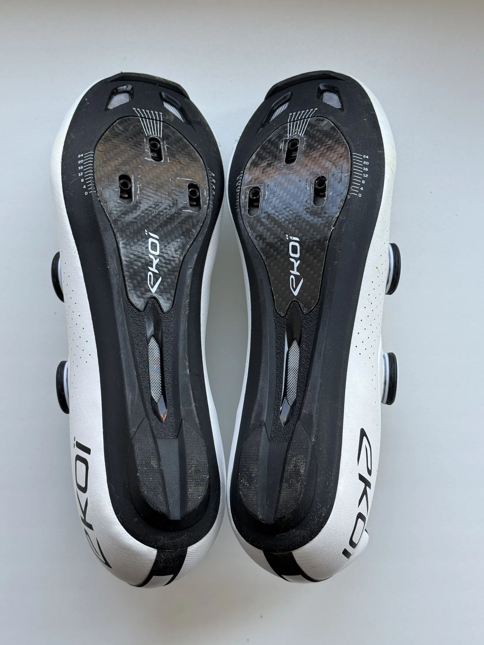 Prodám silniční tretry EKOI Perf R4 CARBON INSERT. S botama najeto max 300km a nesou minimální známky používání.