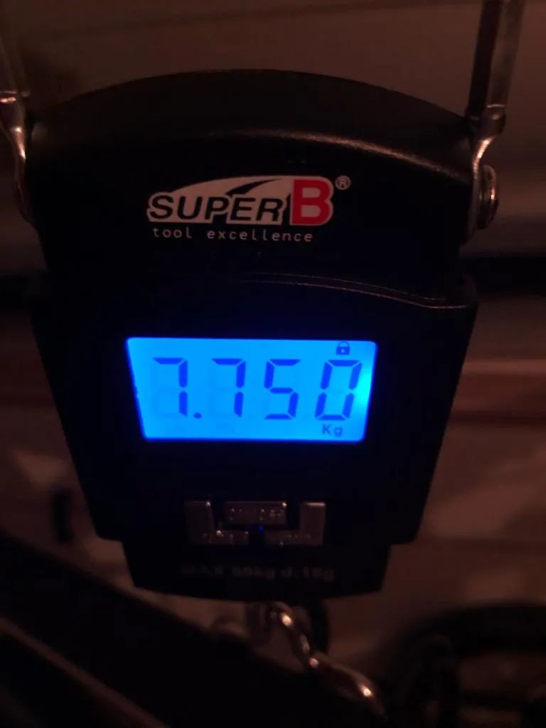 Celková hmotnost cca 7,75 kg včetně pedálů – v rámci kategorie velmi slušná.