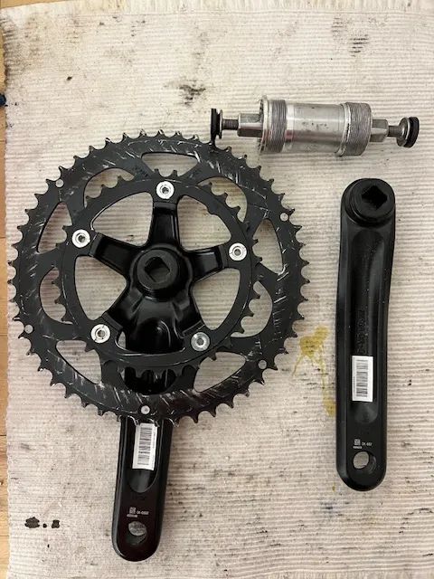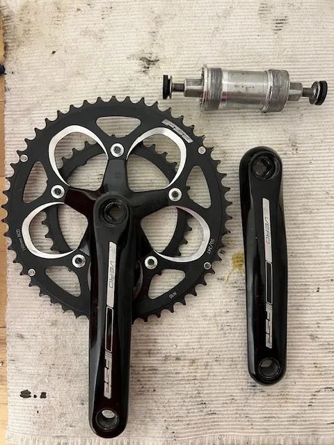 Prodám silniční alu kliky 172,5 mm, převodníky 50/34, najeto 1000km, střed