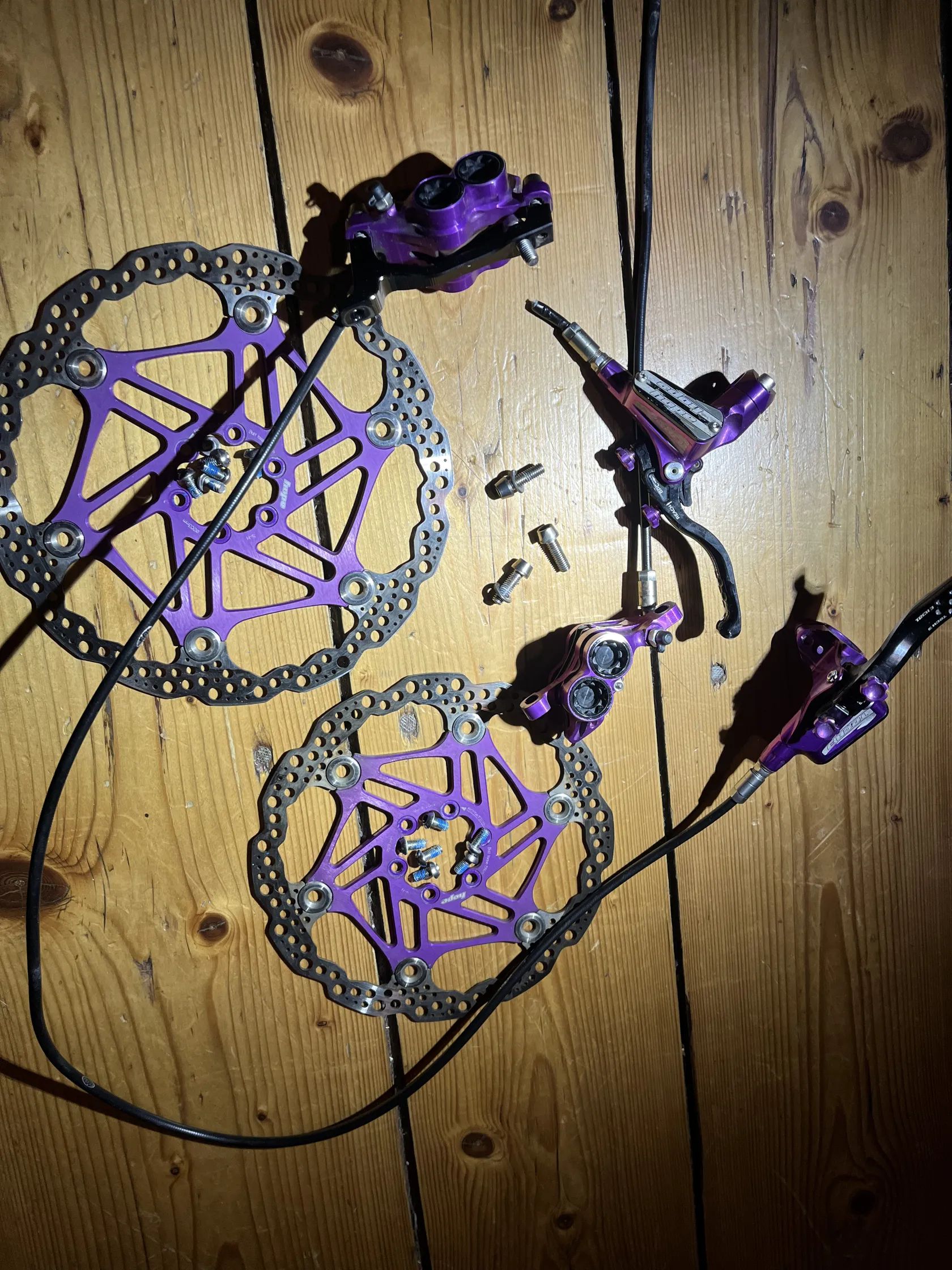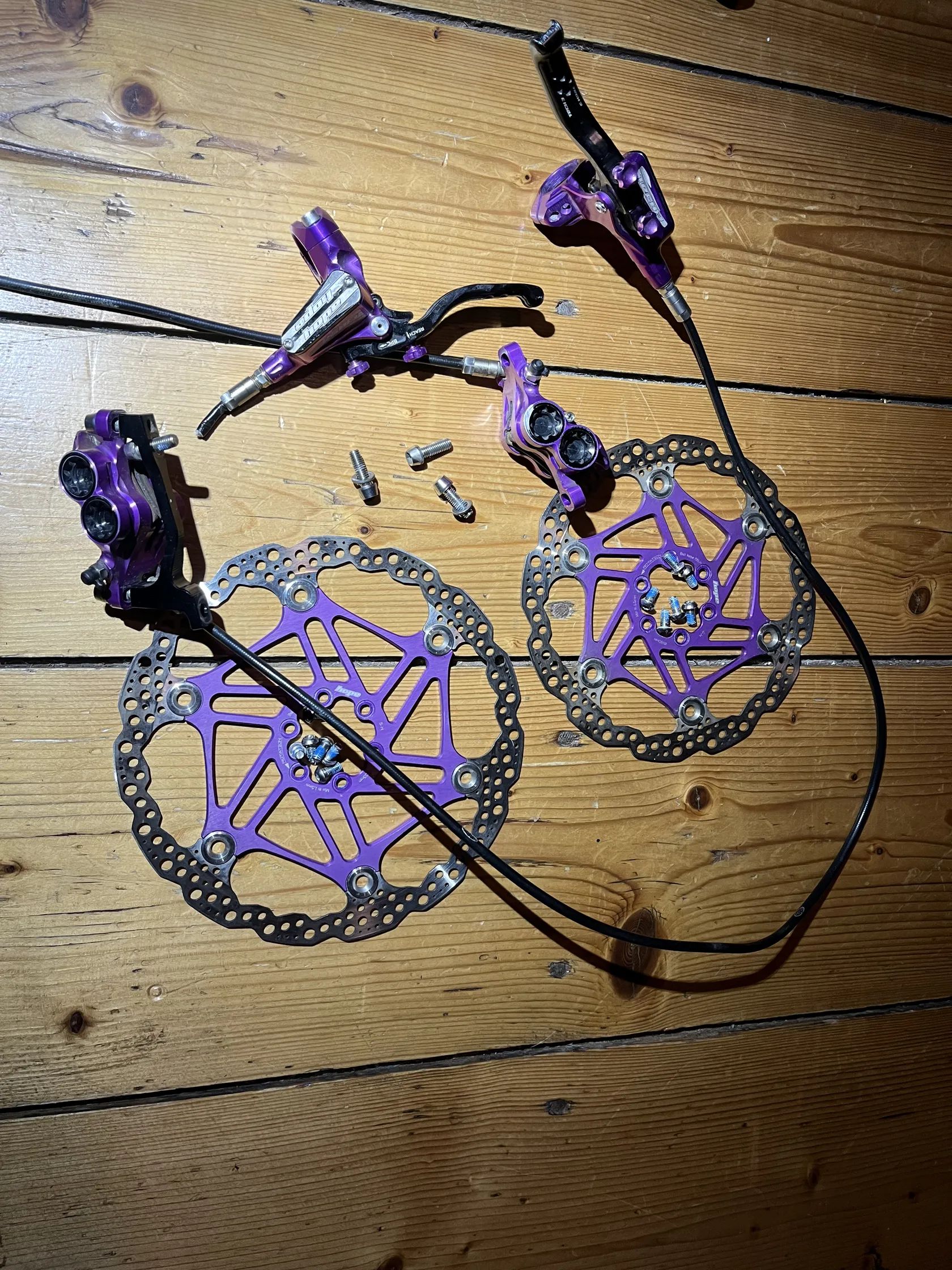 prodam 2 roky stare kotoucove brzdy hope tech3 e4, desticky original hope, vcetne titan sroubku a kotoucu 203/180mm je potreba odvzdusnit