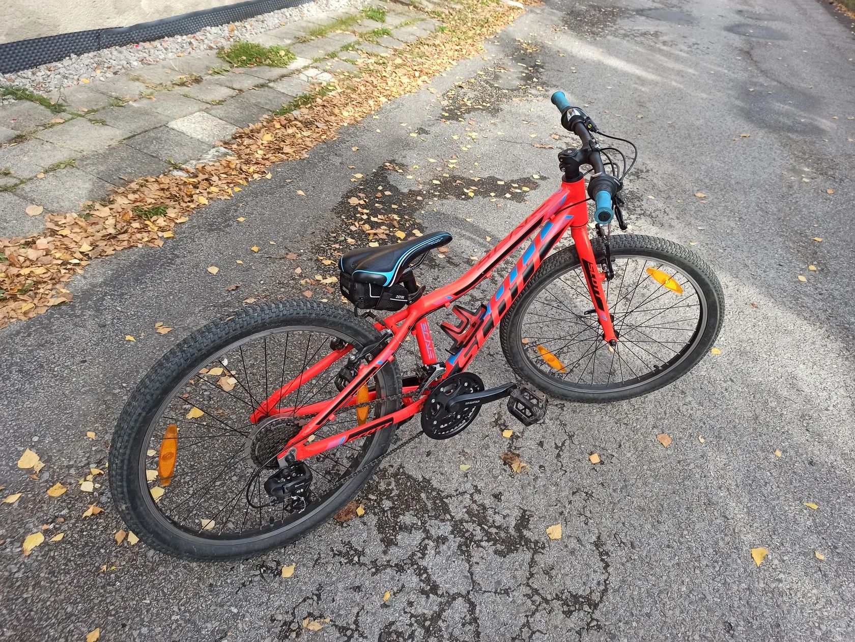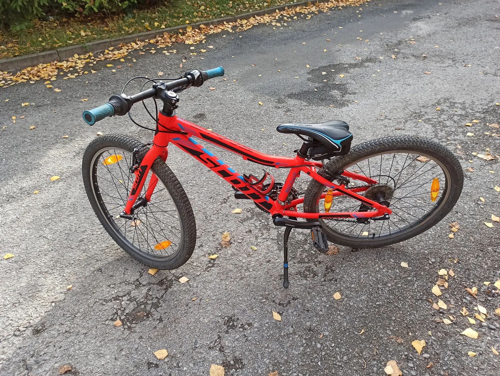 Prodám zachovalé a plně funkční dětské kolo Scott pevná vidlice. Převody 3*7 váha kola 10 kg.