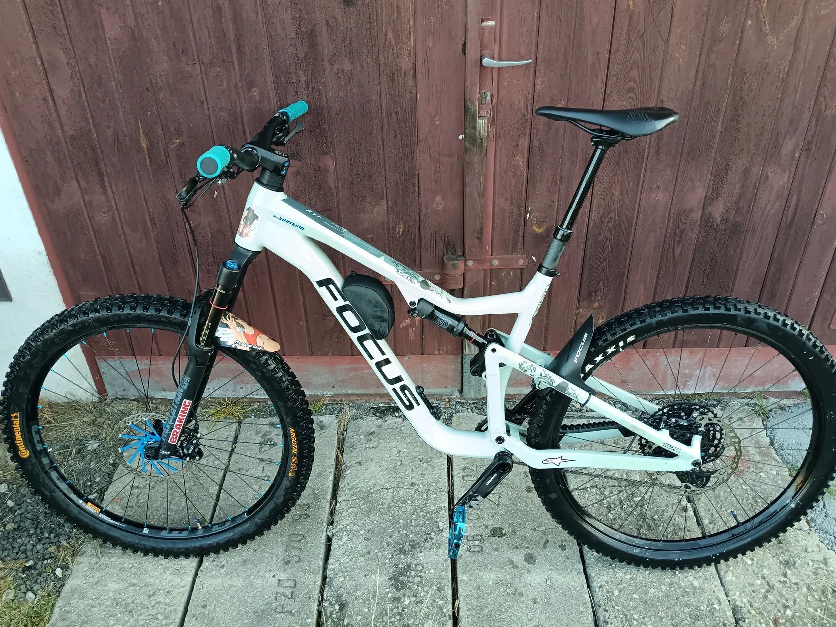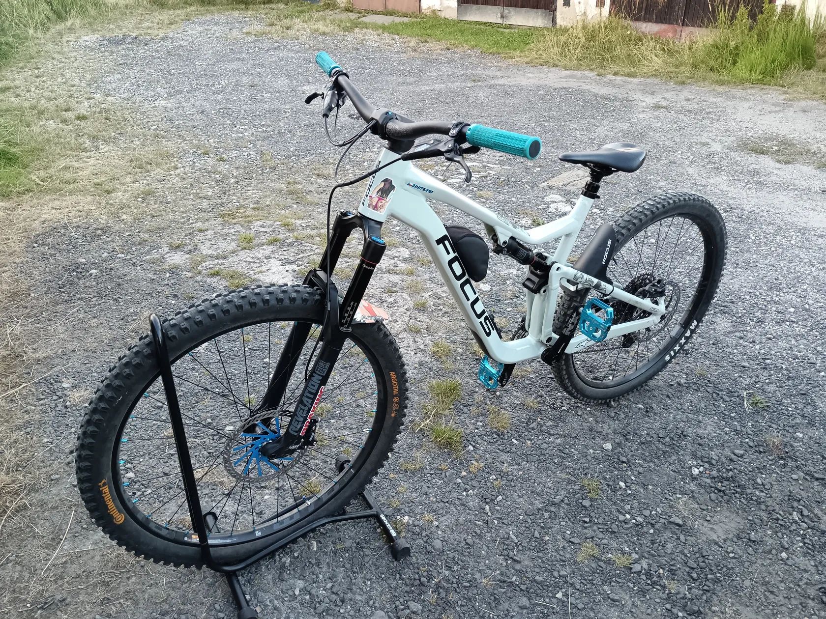 FOCUS - JAM 6.8 29" Sky Grey Plně funkční kolo,pravidelný servis, nějaké oděrky má,ale nic co by mělo vliv na funkci.Zdvih 150mm, měněný přední ráfek WTB, ochranné folie, řazení a brzdy Sram, v předu kotouč 203mm ,zadní kotouč 223mm.