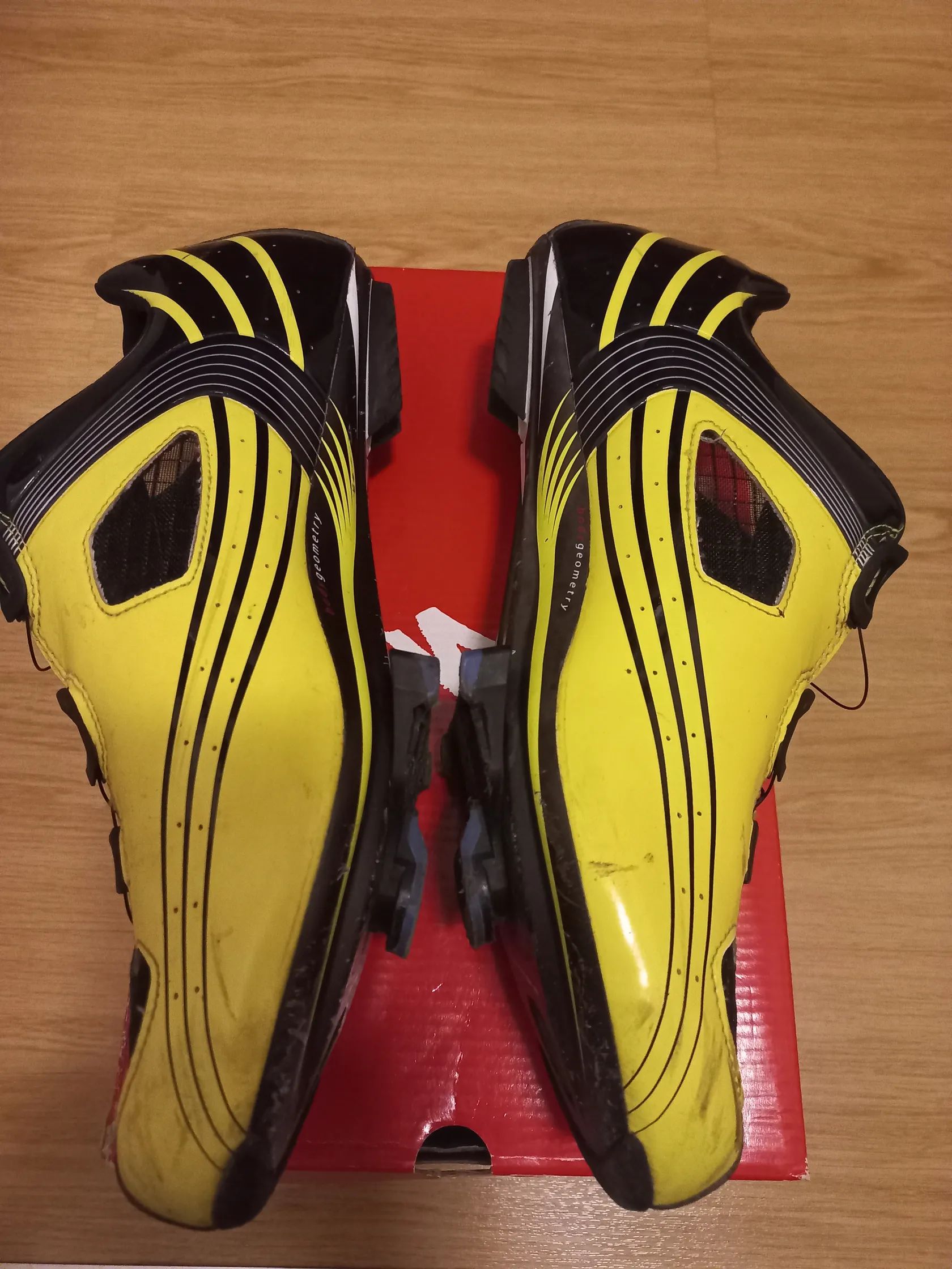 Prodám tyto svoje velmi zachovalé tretry na silniční kolo. Carbon podešev. Velikost přesně odpovídá realitě a změření vložky. Viz foto štítek na krabici. Jediný důvod prodeje je to , že jsem skončil definitivně se silničkou. Tretry jsou lehké a tuhé a skvěle odvětrané. Mírné oděrky z provozu, ale jinak si myslím, že jsou ve skvělém stavu. Dotazy rád zodpovím a není problém někam boty poslat. Nejlépe po platbě předem a já pak Zásilkovnou.