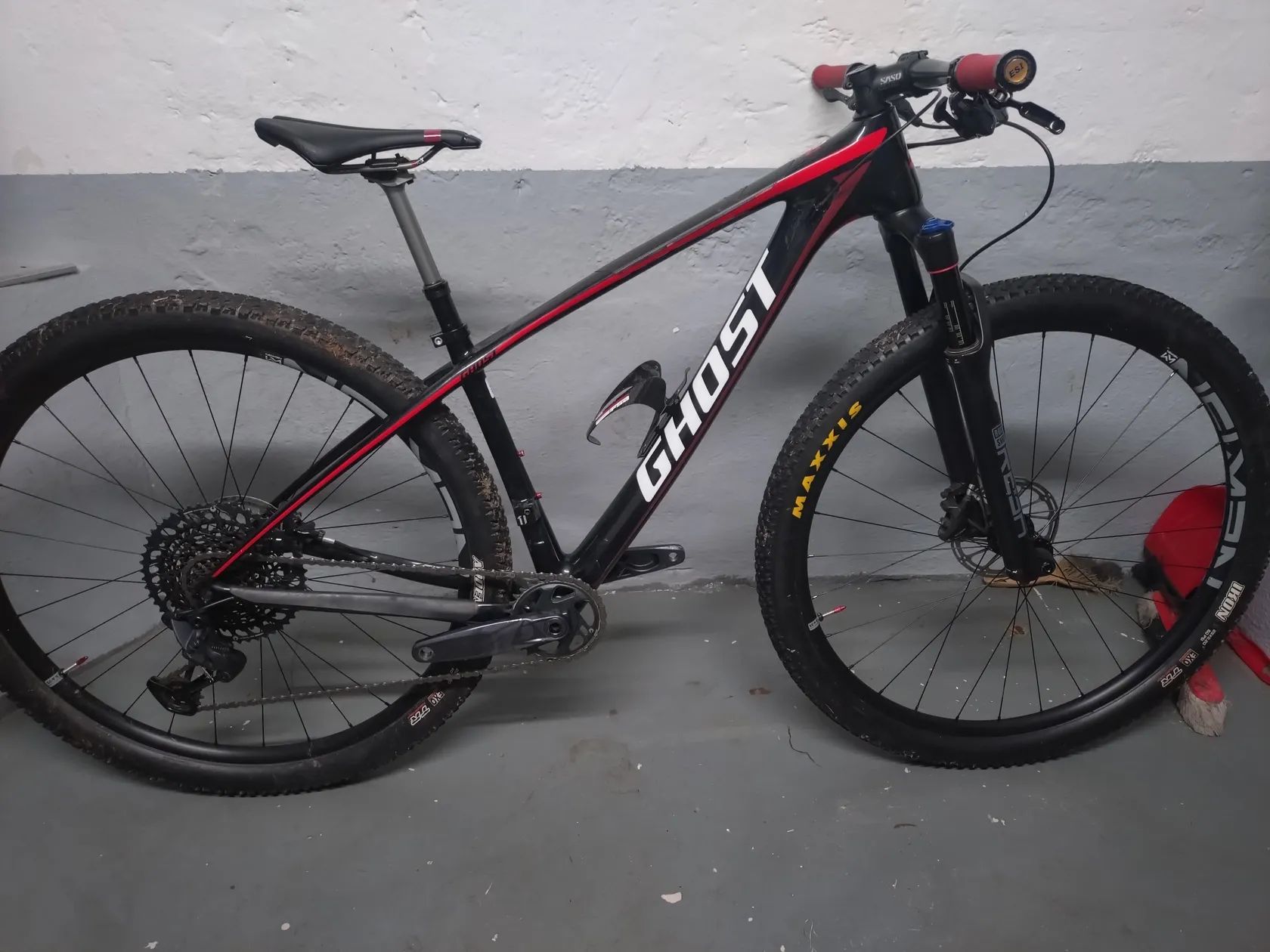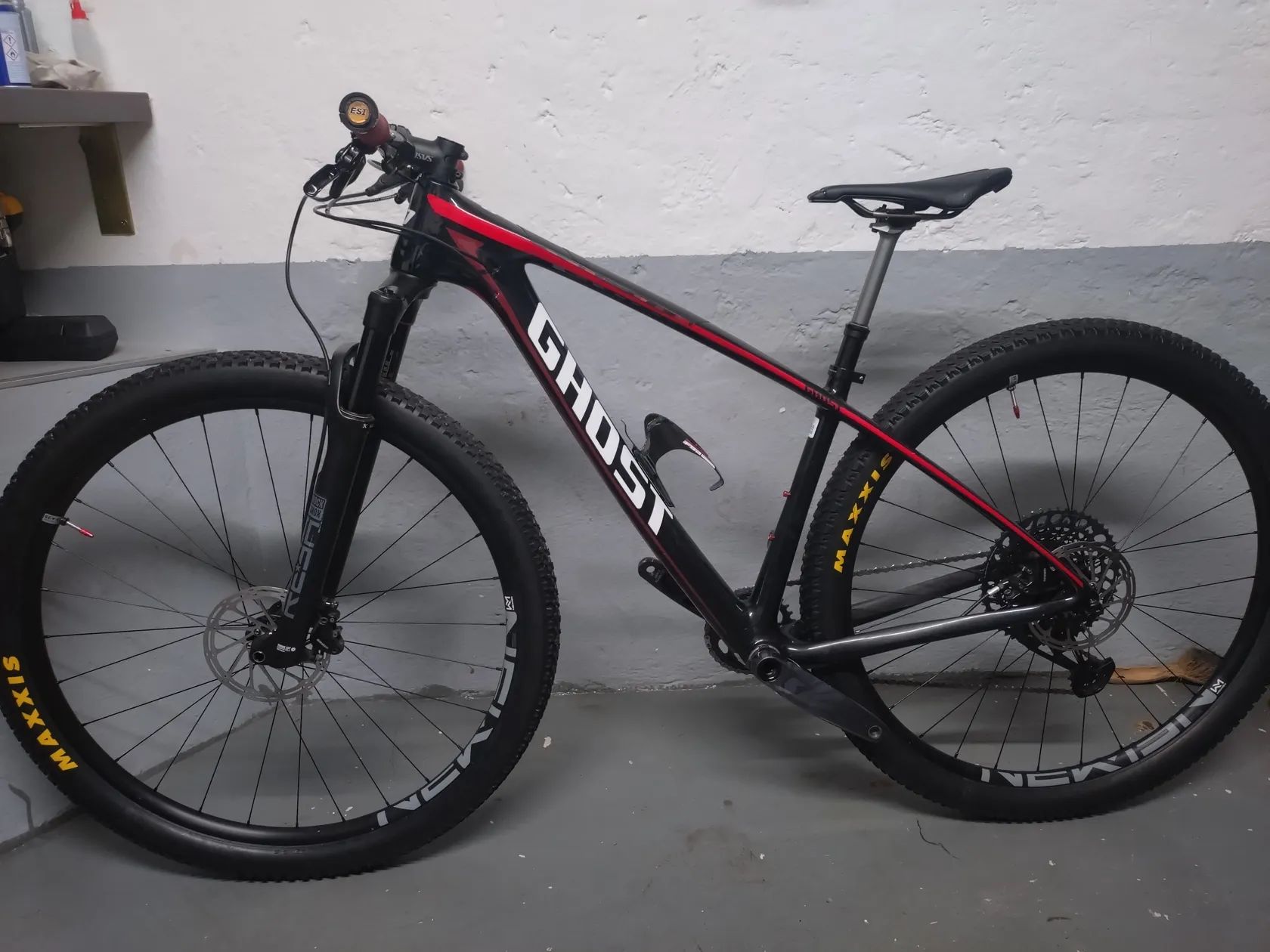 Prodám karbonové horské kolo Ghost (stavba), vel XS (145-160), karbonové doplňky (řidítka, sedlovka, kliky, držák), převod 1x12, Sram GX, 32T - 1/12 (52T), bezdusove kola (nyní duše), více po telefonu