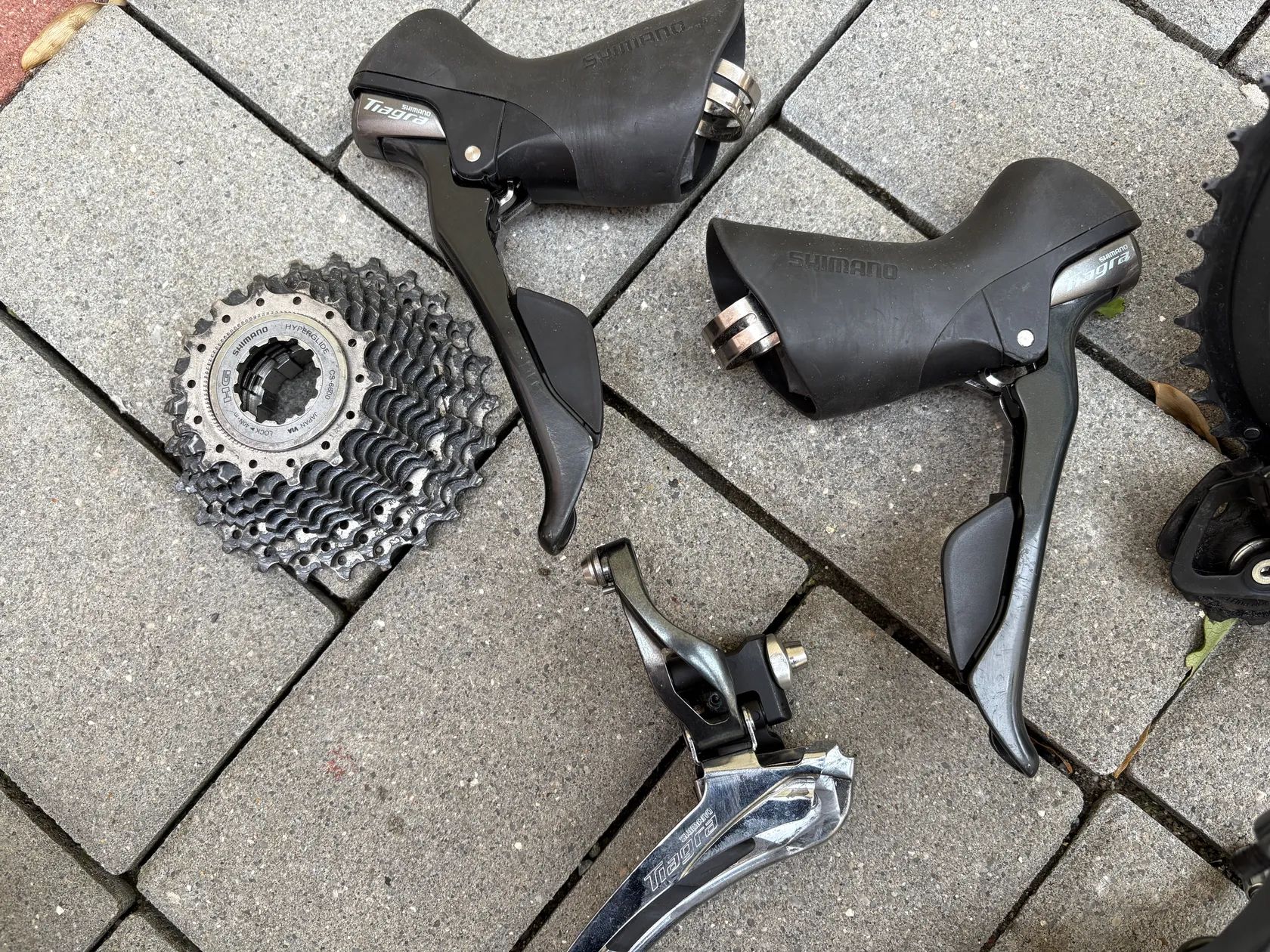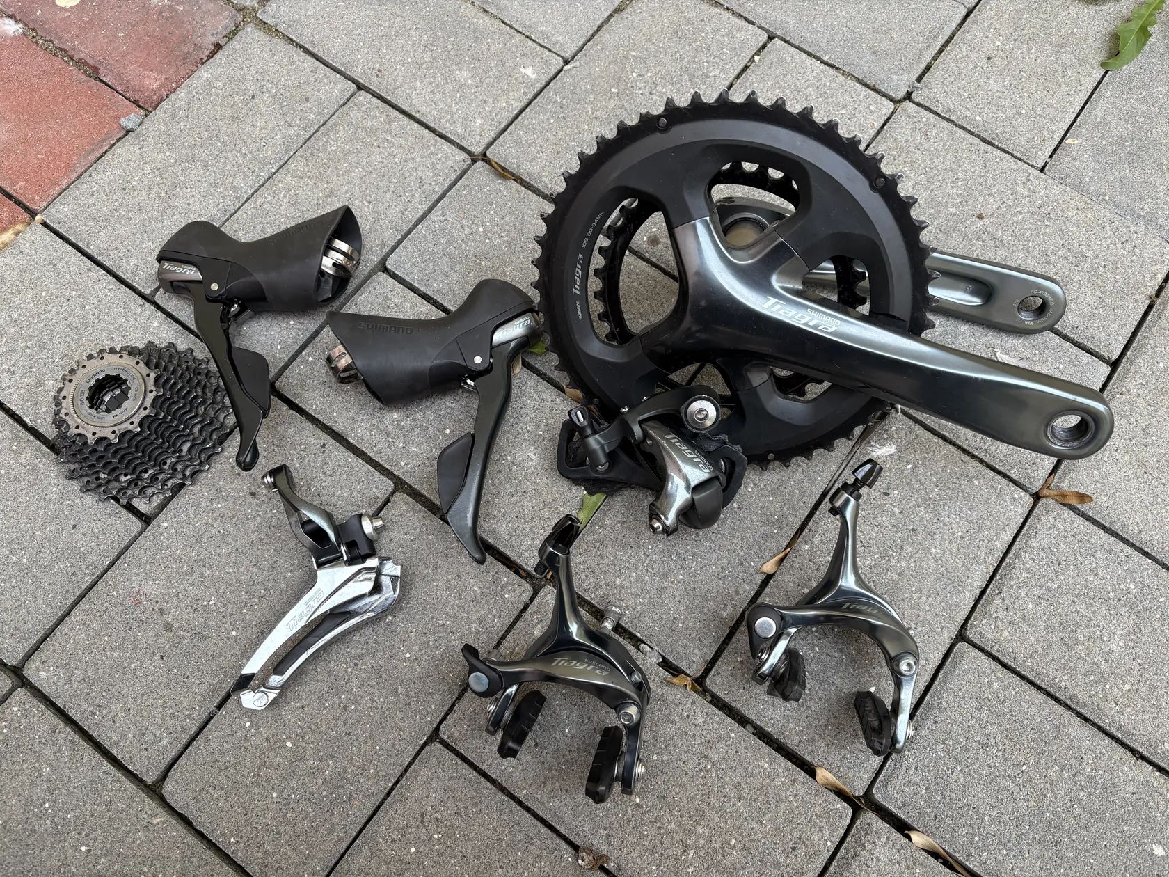Páky, přední/zadní přehazka, kliky i brzdy. Kliky 50/34z 170mm Kazetu s řetězem můžu taky nechat, ale je to dost závodní starší Ultegra 14-25 a řetěz je z kola se zadní stavbou 400mm, takže nezaručím, že bude pasovat. Kdyby někdo měl jen rám, mám i kola, co se se sadou používaly třeba za 500,- navíc, žádná hitparáda, ale jezdit se dají.