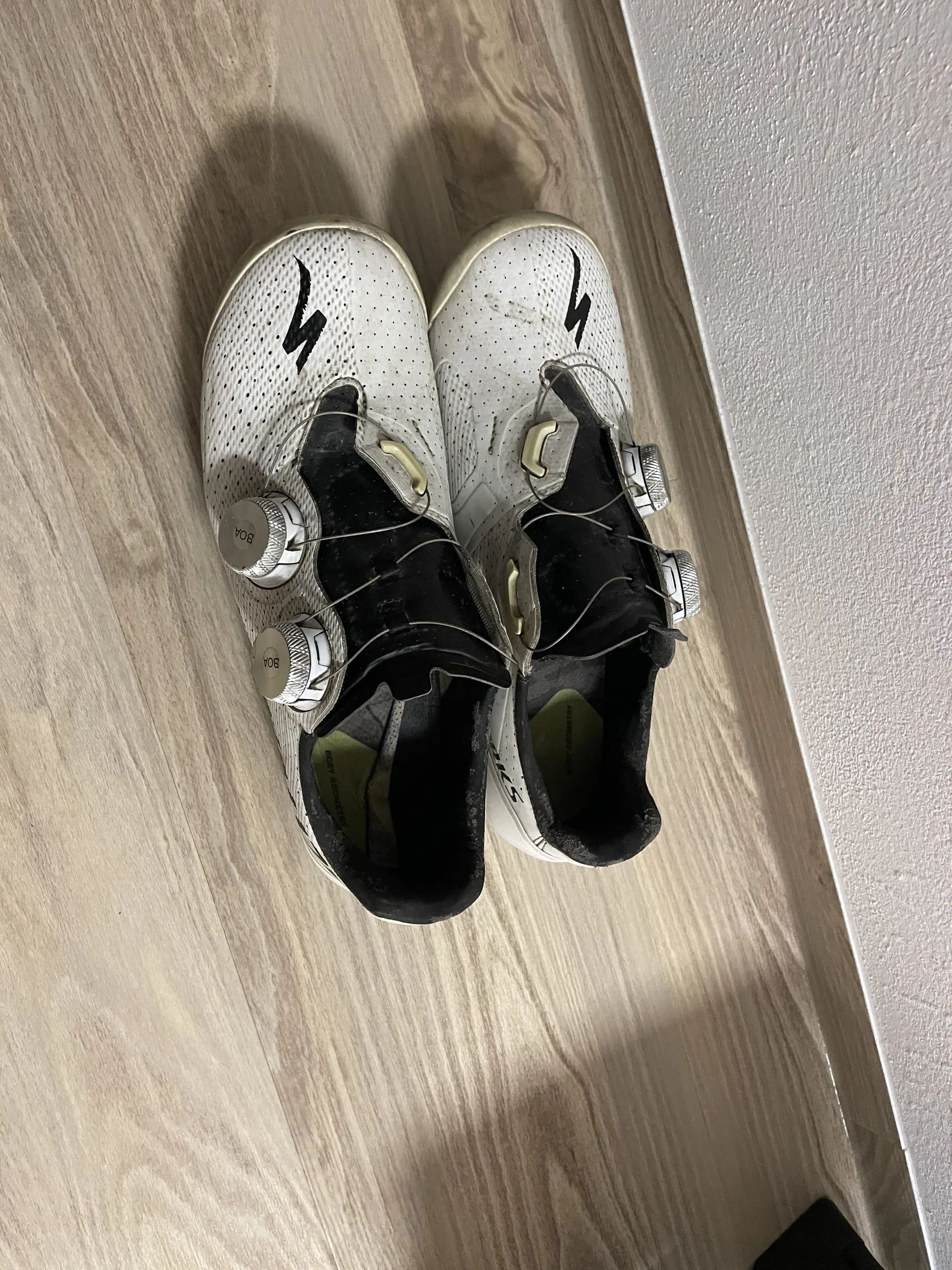 Prodám silniční tretry Specialized S- works, stav dobrý, boa kolečka funkční. Bílá- kombinace černé, vel. 39