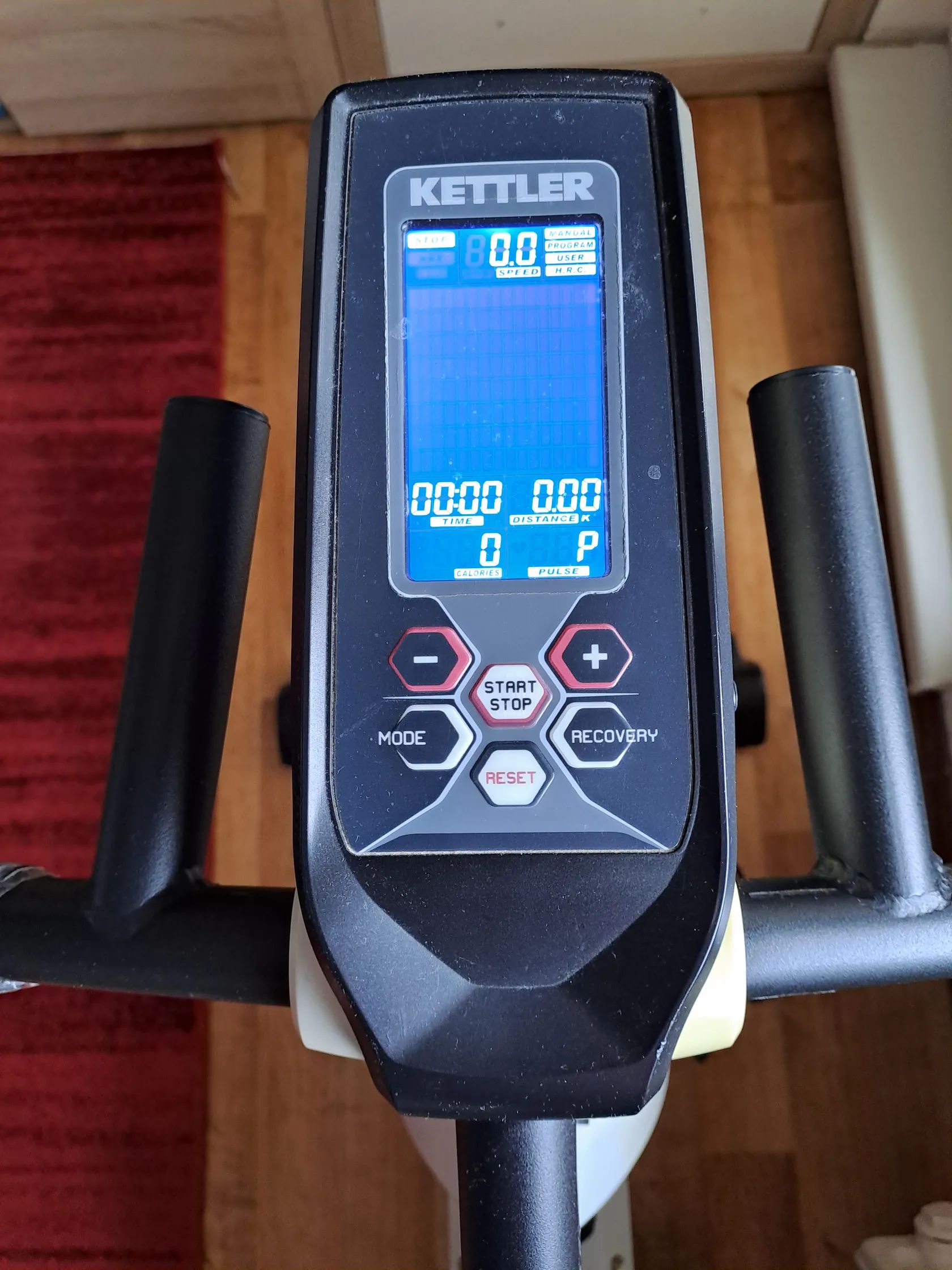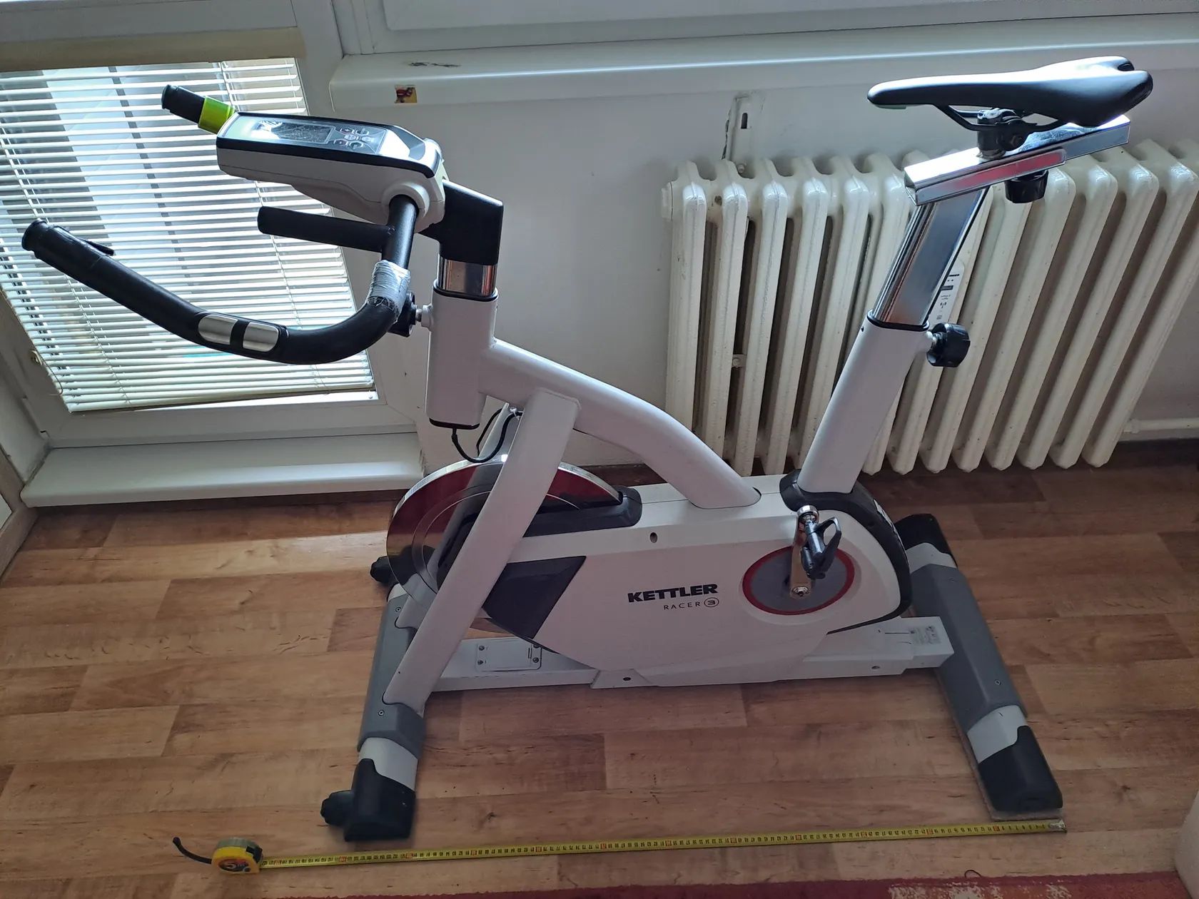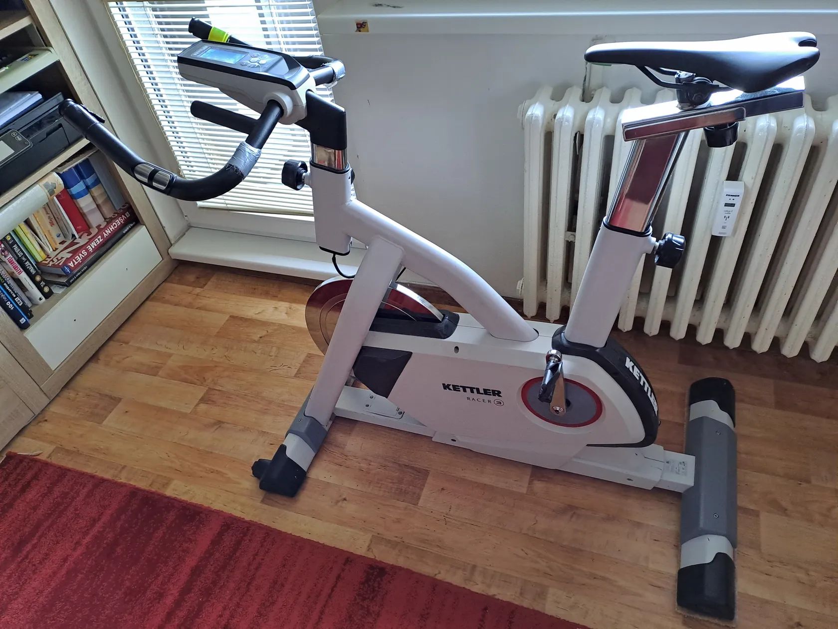 Prodám plně funkční ve výborném stavu a hlavně tichý trenažér zn. KETTLER racer 3, vhodný do bytu. Magnetická brzda (32 stupňů zátěže, plynulý chod zajistí setrvačník 18kg, přesné řazení tlačítky). Manuál k dispozici. Není nutno připojit do zásuvky, energii si vyrobíte roztočením pedálů. Neměří waty, tedy není profi, ale kondice se velmi dobře řídí dle stupně zátěže a frevence otáček, tep doporučuji měřit na externím zařízení, např. hodinky, cyklocomputer. Prodám s klasickými pedály, možno namontovat libovolné. Vhodný i pro rehabilitaci, velký rozsah nastavení. Možno prohlédnout, případně vyzkoušet, nebo předvedu na adrese Praha 3 Cena 10000,-Kč