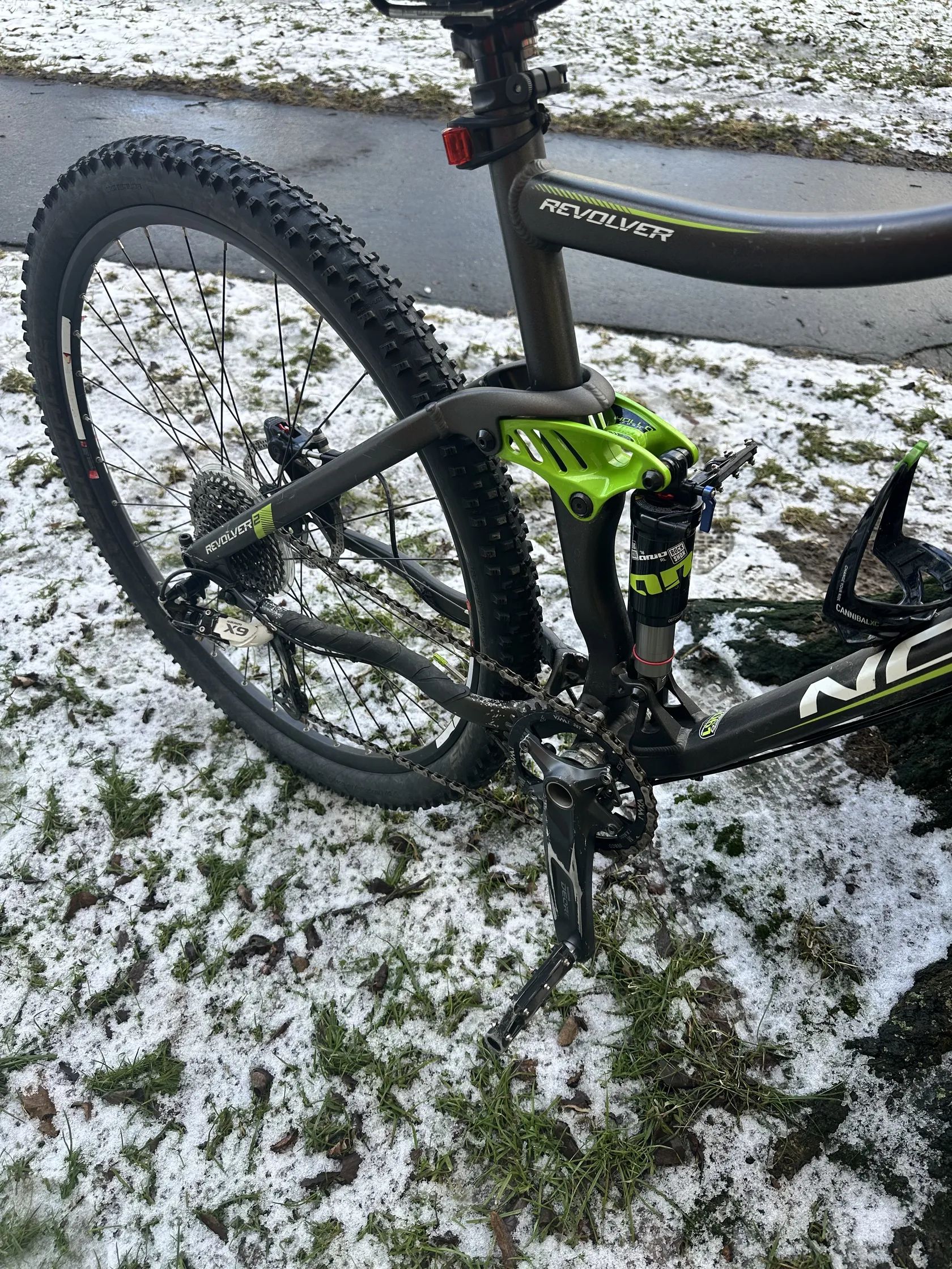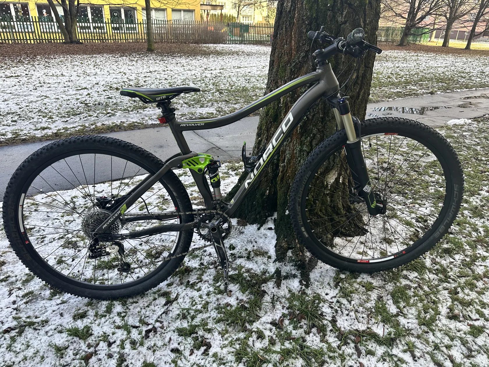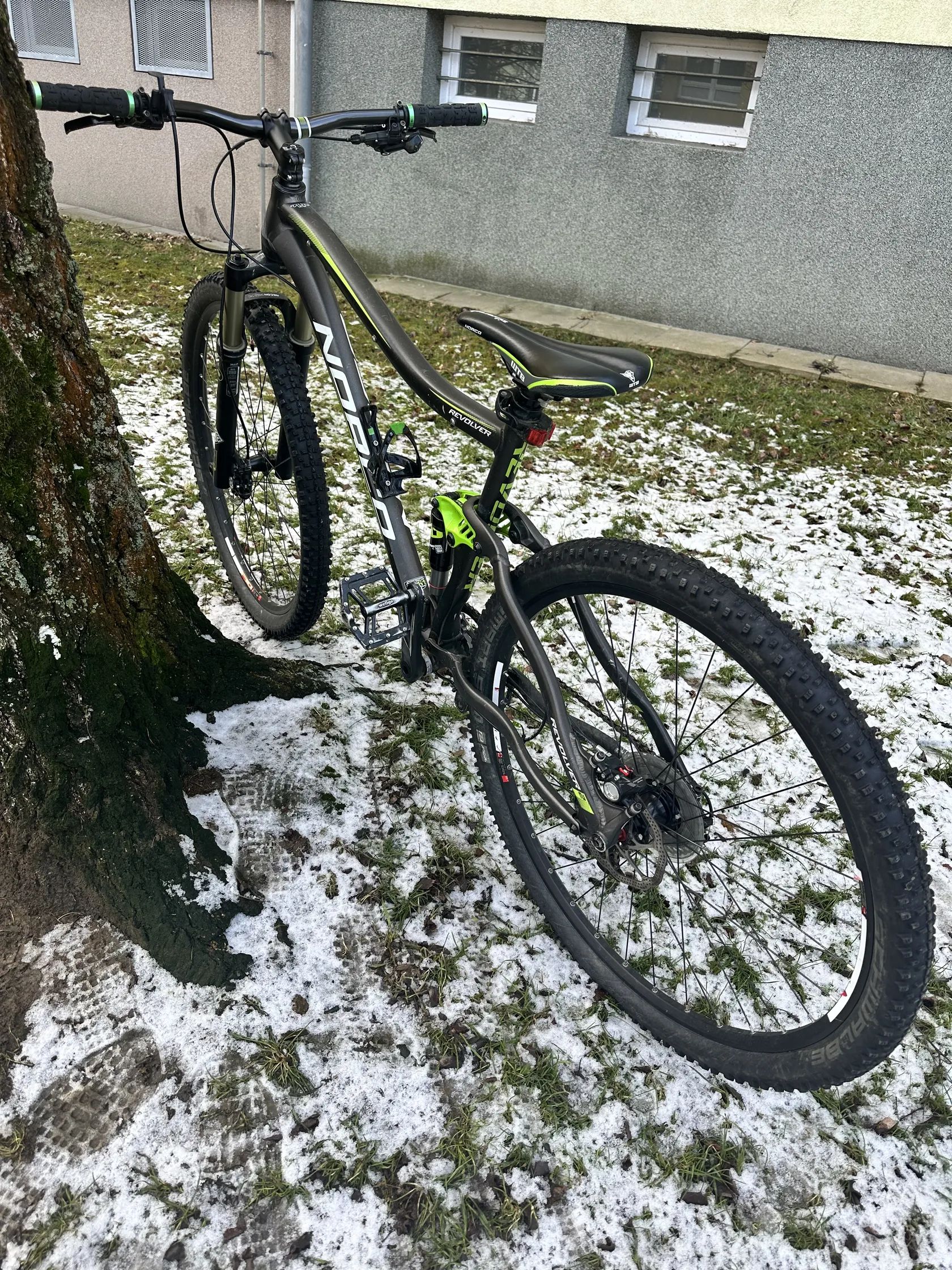 Prodám kolo Norco Revolver 2, barva šedozelená viz foto. Kolo je pravidelně servisované, naposledy 1/2026 Tlumiče zn. Rockshok, brzdy Shimano, přehazovačka SRAM X9. Vše plně funkční, běžné známky opotřebení.