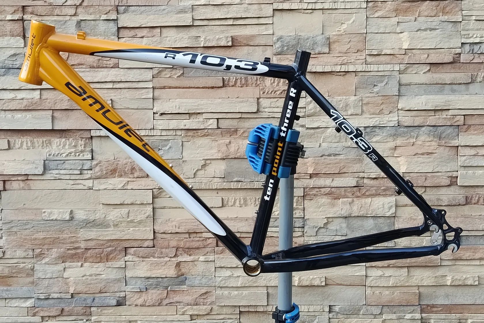 Prodám rám Amulet 10,3 R. Materiál ALLOY 7005 T6 SUPERLITE EXO, velikost rámu 19", průměr sedlovky 27,2 mm, hmotnost 1605 g, pouze pro kotoučové brzdy, průměr kol 26", vidlice 80-100 mm. Rám je pouze vyzkoušený, po pár kilometrech byl odstrojen, vyměněn za větší a od té doby leží v dílně. Je ve 100% mechanickém stavu a má jen minimální oděrky od demontáže. Ideální na stavbu nabušeného retro MTB.