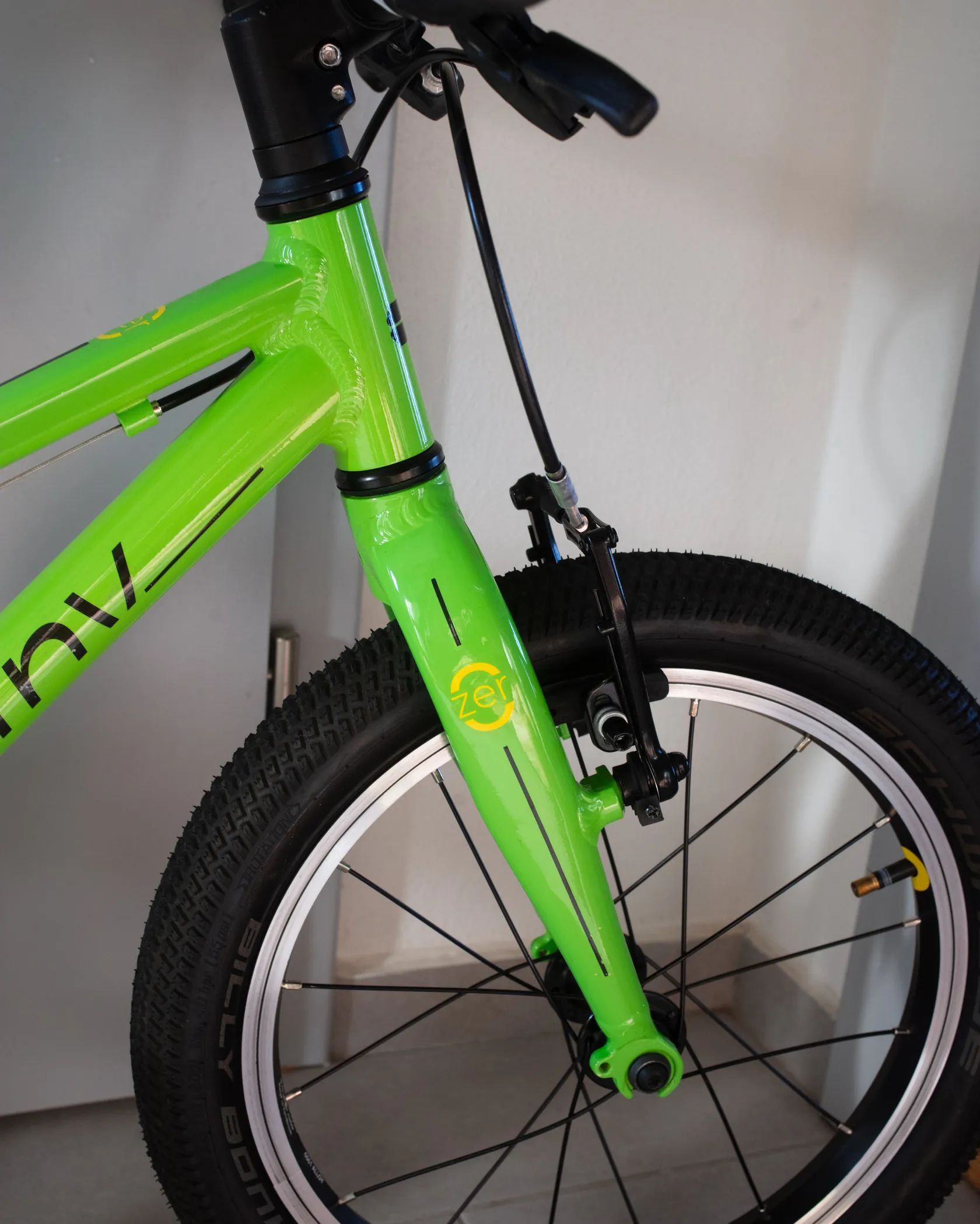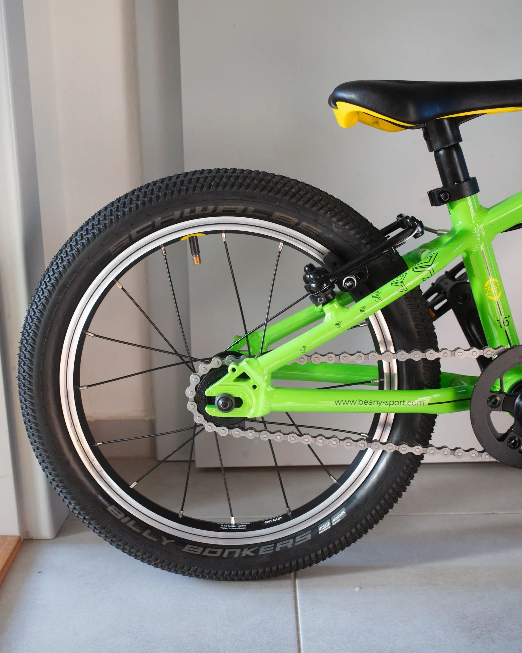 se 16" koly, navržený speciálně pro malé děti (ergonomie, krátký dosah k řídítkům, nízký rám)