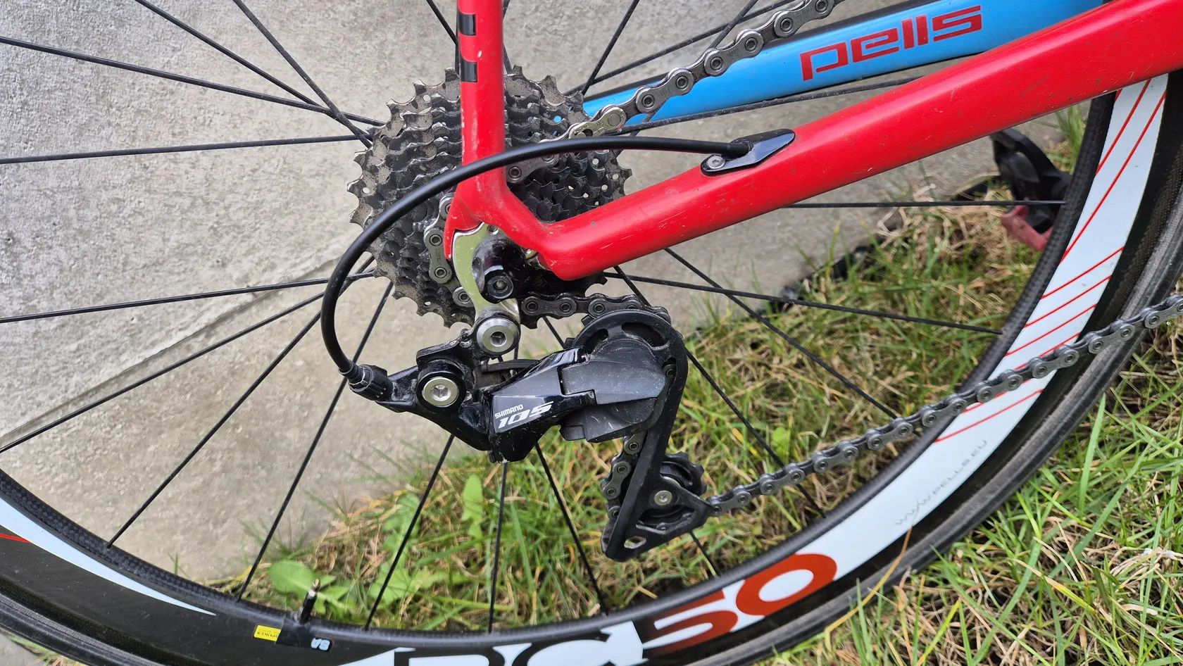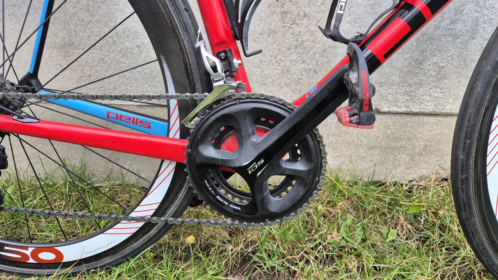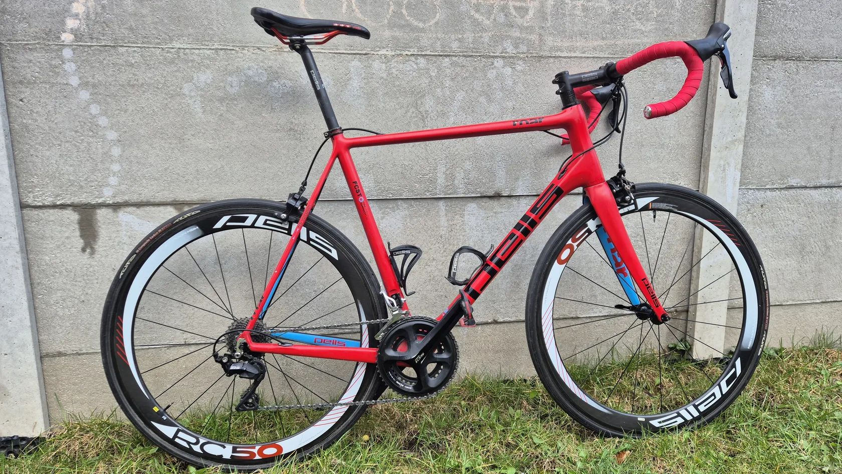 Kola: PELL’S RC50, 50 mm galusková – vysoké aerodynamické ráfky, vhodné pro rychlou závodní jízdu; možnost dokoupit náhradní kola Mavic Aksium (spolehlivá základní tréninková kola)
