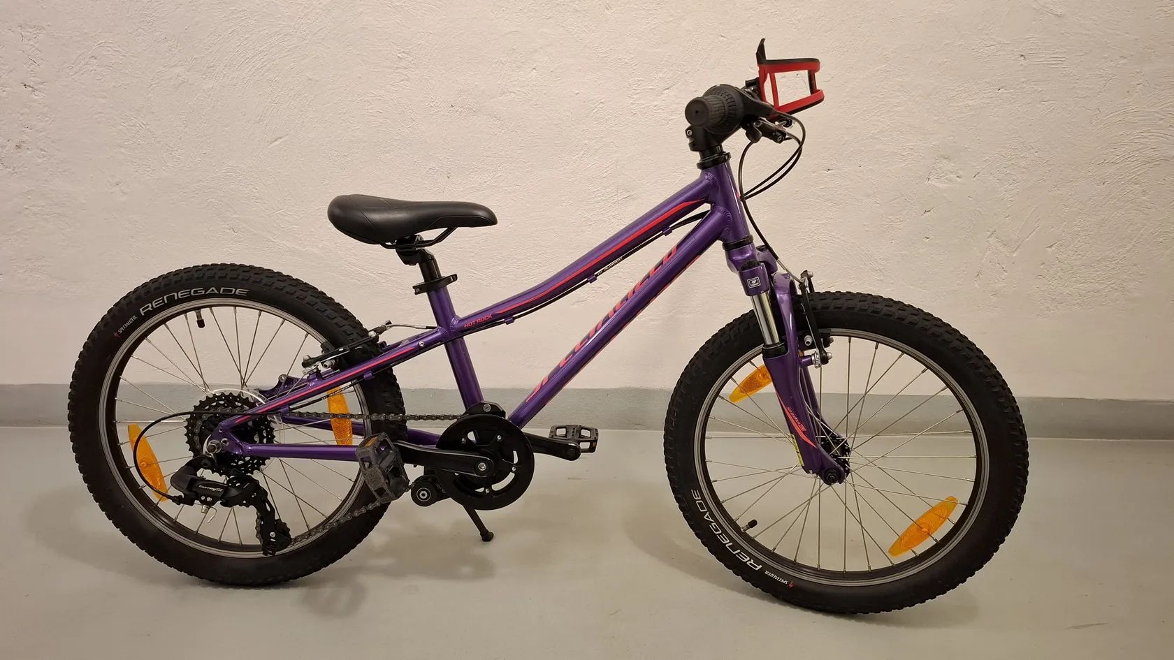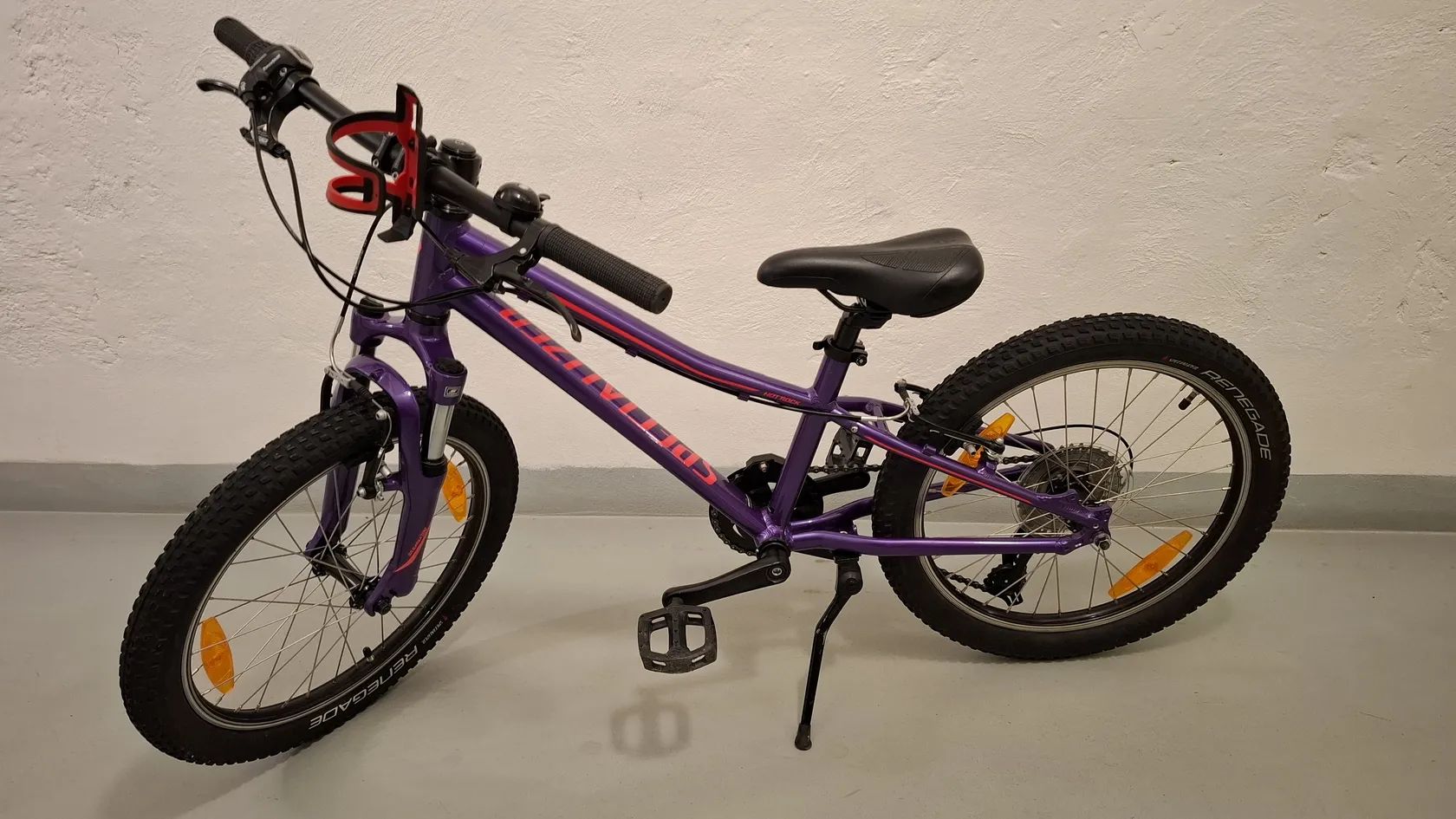 Doplněn rychloupínák na seřízení výšky sedlovky a držák na pití na řidítkách. Kolo je ve slušném stavu, 100% funkční, namazané a připravené na jízdu.