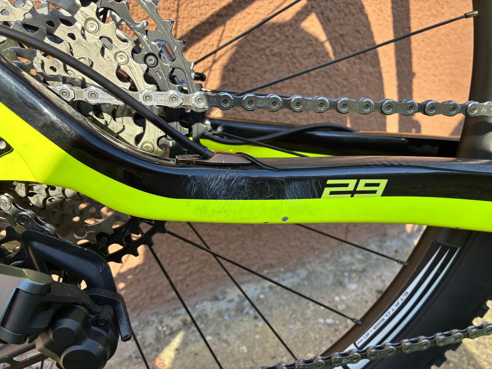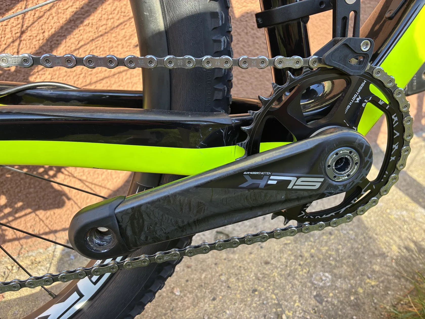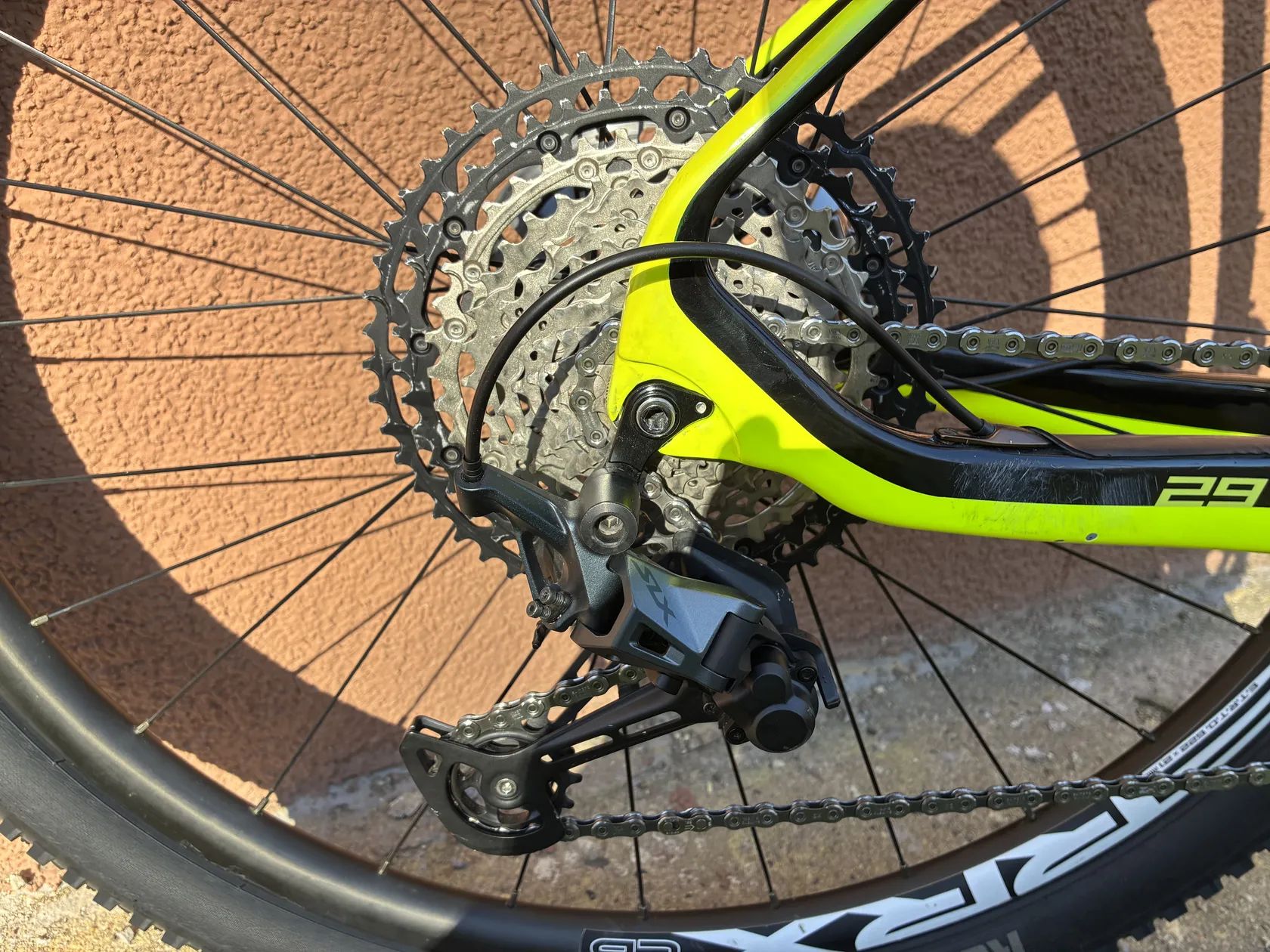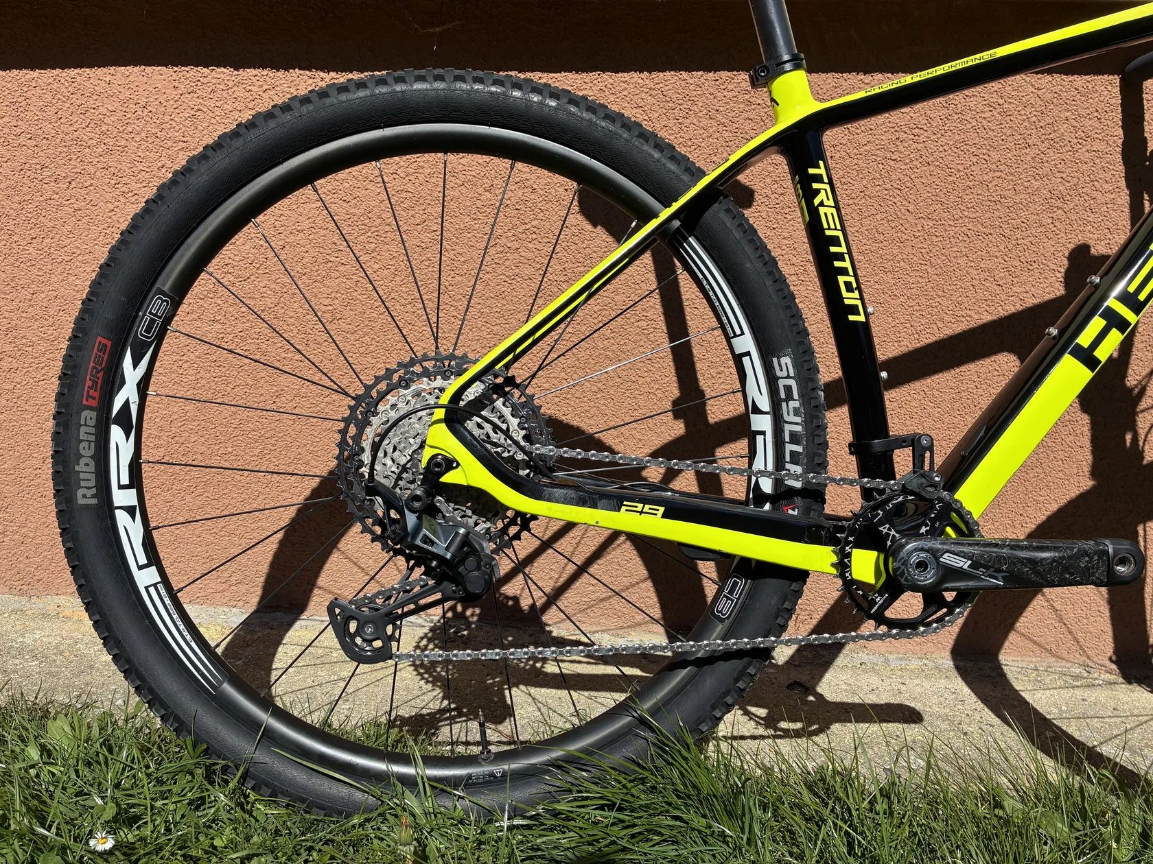 - brzdy: Shimano XTR - kazeta: Shimano XT - přehazovačka: Shimano SLX - řazení: Shimano XT - převodník: FSA SL-K Modular Carbon 34/175 mm (převodník nový) - vidlice: Rock Shox SID Ultimate 100 mm + OneLoc, TPR - ráfky: RRX CB TL Carbon 28h - náboje: přední HBC Pro 15x110 mm, zadní HBC Pro 12x148 mm - karbonová řídítka: Caracal - karbonová sedlovka: FSA Carbon 350–400 / 31.6 mm - představec: FSA SL-K -20° 80 mm - původní představec: FSA SL-K Carbon 31.8 mm (nahrazen kvůli úpravě posedu, lze přidat ke kolu) - pláště: Rubena Scylla, Rubena Rascal
